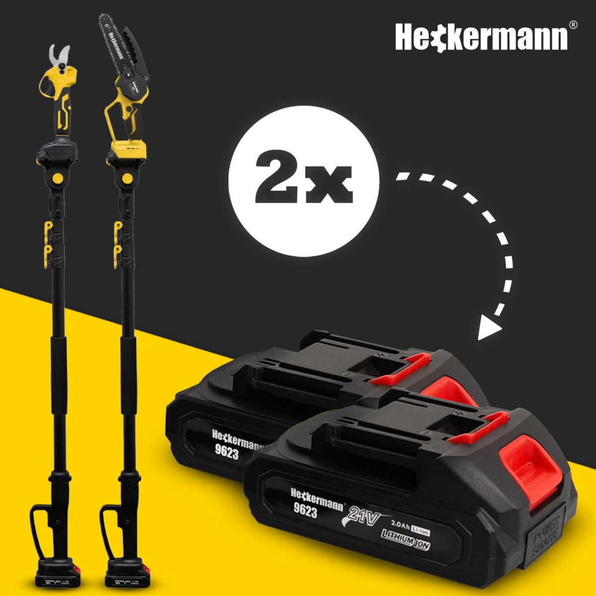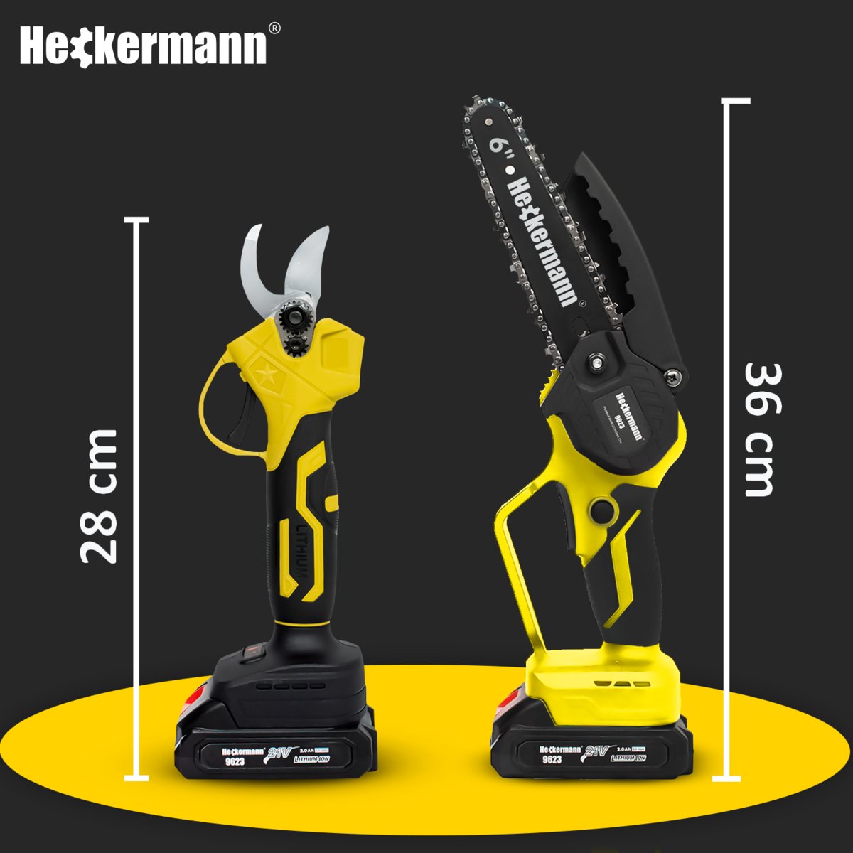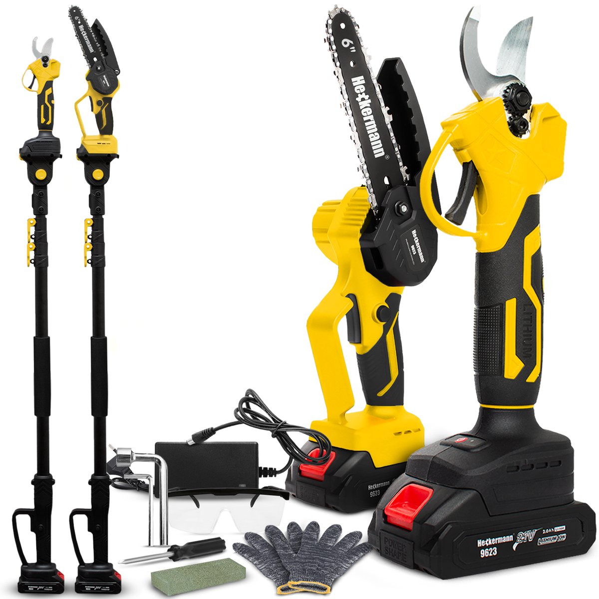 Zestaw 3 w 1! Mini piła łańcuchowa akumulatorowa Heckermann 6" + Sekator akumulatorowy + Tyczka przedłużająca do 2 metrów! !Dwa akumulatory w zestawie! Jeśli kompletujesz swój domowy zestaw narzędzi,