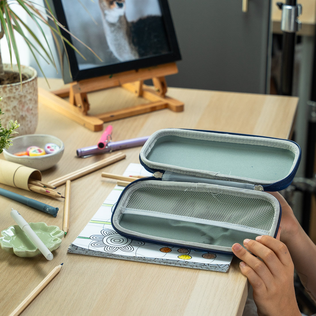➡️ POJEMNY i dodatkowo wyposażony w kieszeń z siateczki, w której schowasz drobne przedmioty, np. gumkę do mazania lub temperówkę.