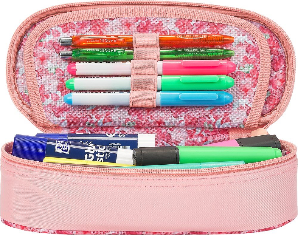 Piórniki z klapką Flowers to połączeniu elegancji i funkcjonalności. Przestronne wnętrze z organizerem pomieści wszystkie niezbędne szkolne przybory, a kwiatowa podszewka zachwyci Cię mocą detali. Piórniki dostępne są w czterech pastelowych kolorach, które przywodzą na myśl najpiękniejsze wiosenne wspomnienia. Delikatny, satynowy materiał dodaje piórnikom jeszcze więcej uroku i klasy. Gumki na przybory pomagają zachować perfekcyjny porządek w piórniku, aby nigdy nie martwić się znalezieniem ołówka czy długopisu.