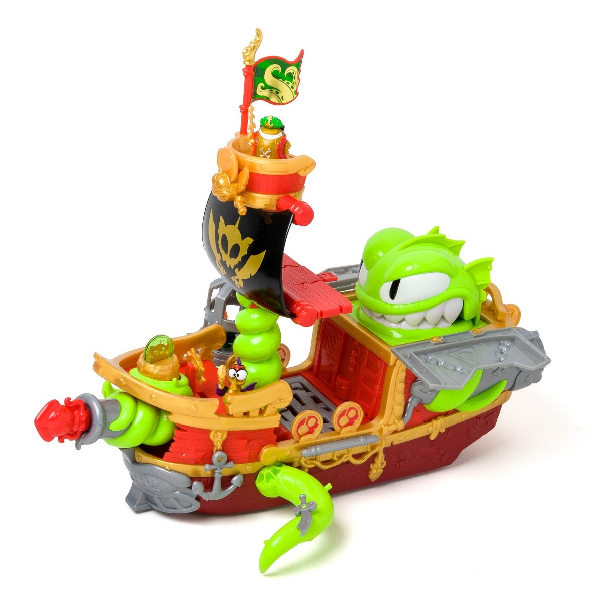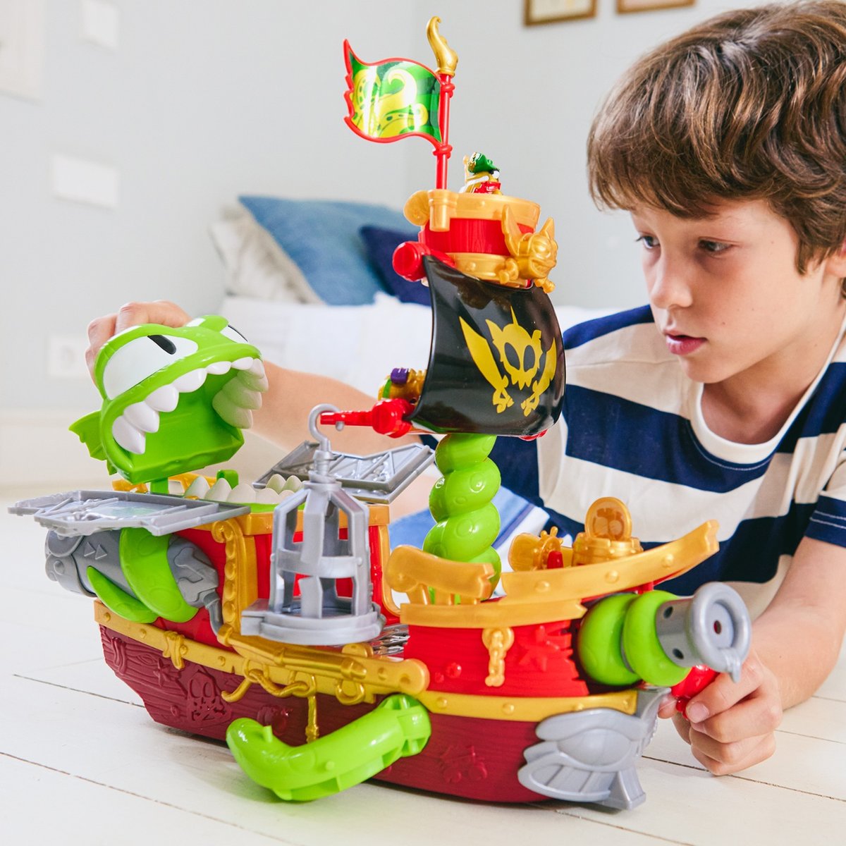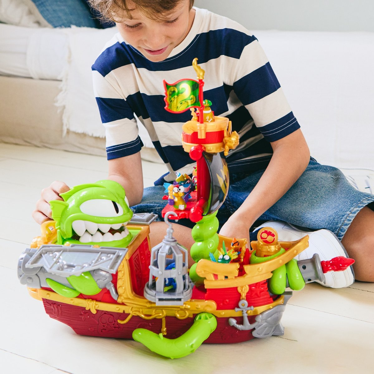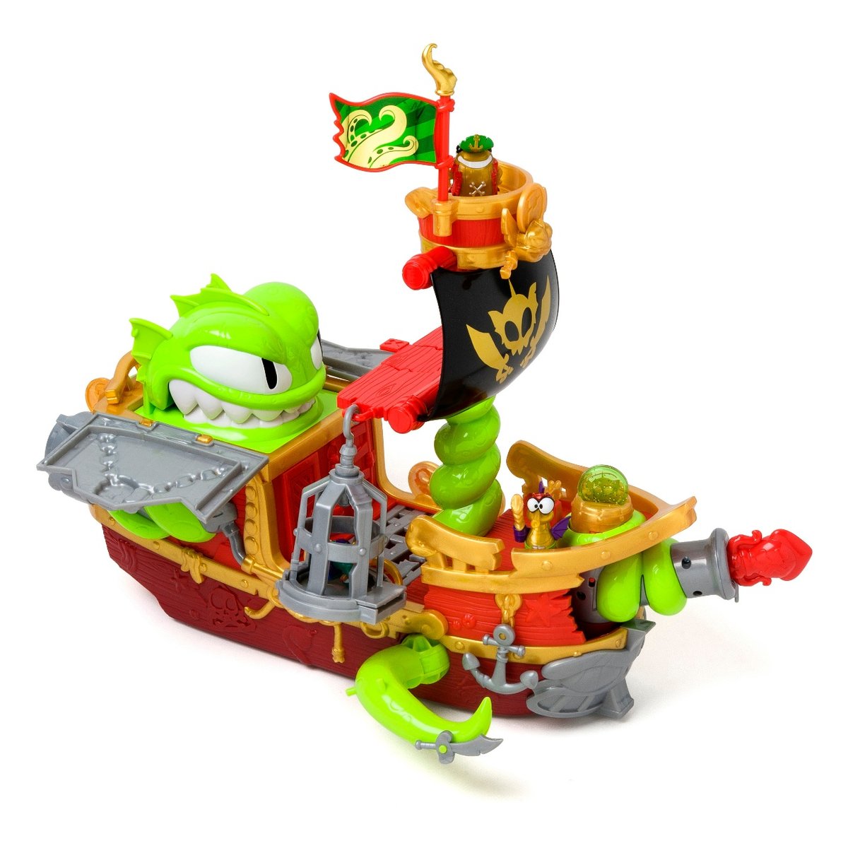 Na statku Krakena możesz przeżywać tysiące przygód! Użyj skarbu, aby celować i strzelać z działa, otwórz więzienie, aby uwolnić uwięzionych Piratixów i „obudź” Krakena, który pojawi się na rufie statku, wyrzucając cały skarb ze swojej paszczy w powietrze. To właśnie w jego szczękach znajdziesz ekskluzywny skarb Krakena, którego tak wielu szukało bez powodzenia, a teraz jest twój! Użyj katapulty, aby wrzucać swoich rywali Piratix prosto do jego szczęk – teraz Kraken i jego straszliwa załoga, Kapitan Wielki Niebieski i jego zaufany pomocnik Zły Koń, są twoimi sojusznikami! Zabierz swoją kolekcję Piratix na pokład i włóż monety do różnych uchwytów rozmieszczonych na całym statku, w tym na górze bocianiego gniazda.