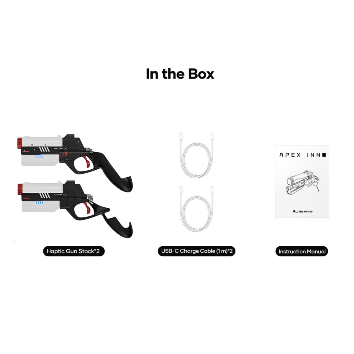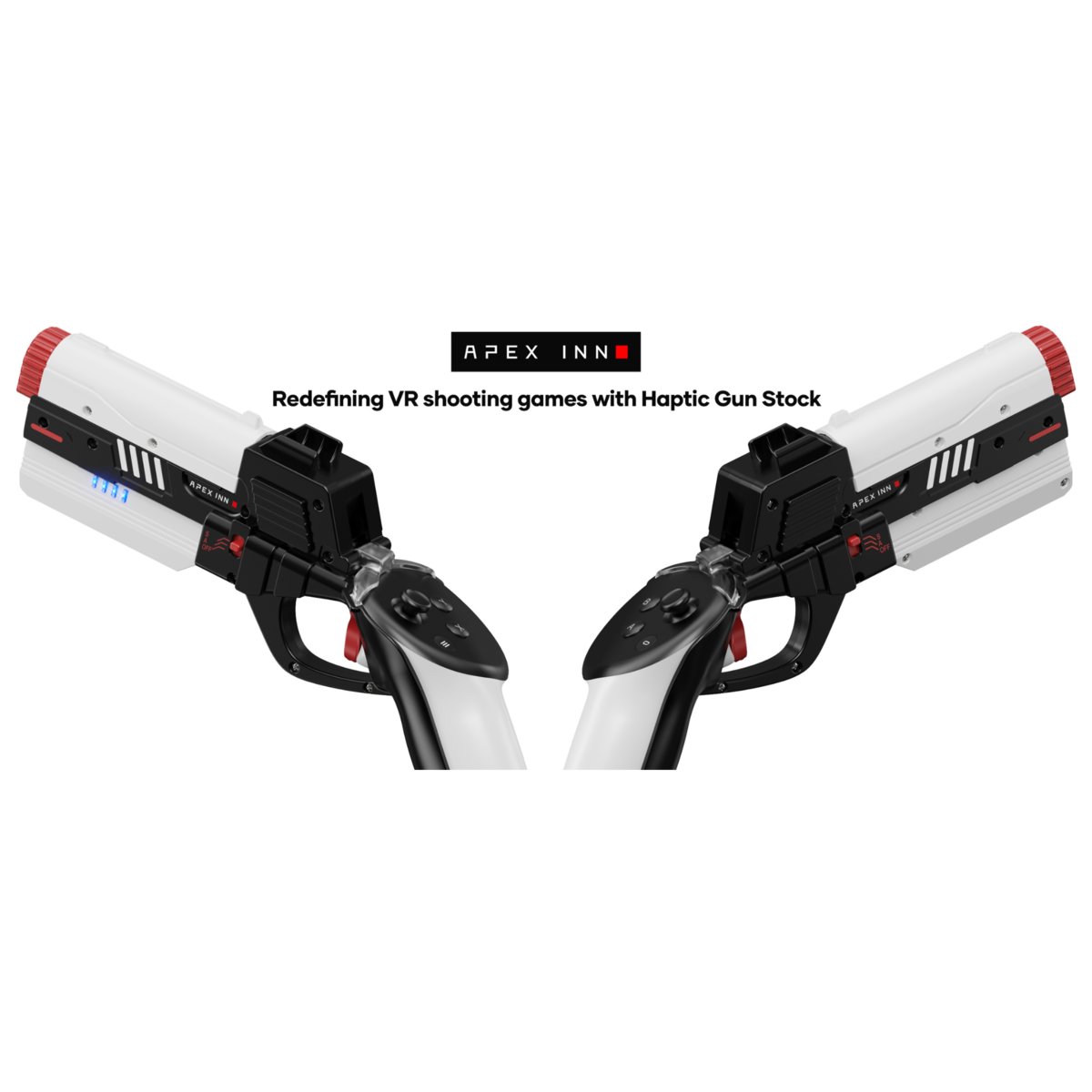 Przenieś swoje wrażenia z gier VR na wyższy poziom dzięki uchwytowi na kontrolery VR APEX INNO, który imituje pistolet z haptycznym sprzężeniem zwrotnym. Ten innowacyjny dodatek został zaprojektowany, aby zapewnić niesamowicie realistyczne doświadczenie strzelania, idealnie współgrając z Twoimi kontrolerami Meta Quest 3.