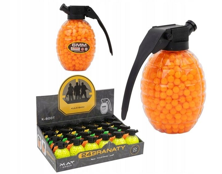 Opakowanie w kształcie granatu pełni dwie funkcje - estetyczne i praktyczne. Wbudowany dozownik ułatwia precyzyjne wsypywanie kulek do magazynków lub zbiorników broni, a jednocześnie zabezpiecza kulki przed wypadaniem w torbie czy pudełku. Dzięki kompaktowej formie opakowanie jest wygodne w transporcie i przechowywaniu.
