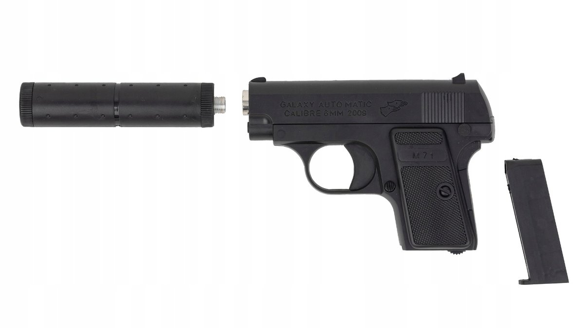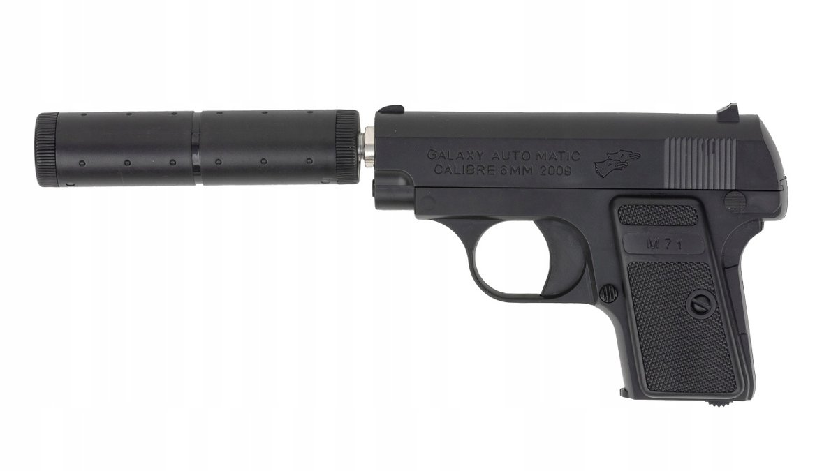 | Nazwa: | Pistolet na kulki 6mm ASG imitacja broni ASGARD Guns + 800 kulek | realistyczna replika sprężynowa | Hop-Up dla lepszej celności | tłumik, magazynek, tarcza strzelecka i wlepki | ABS, energia ~1,2 J, zasięg do 20 m | | idealny do treningu i rekreacji | Pomysł na prezent dla dziecka |