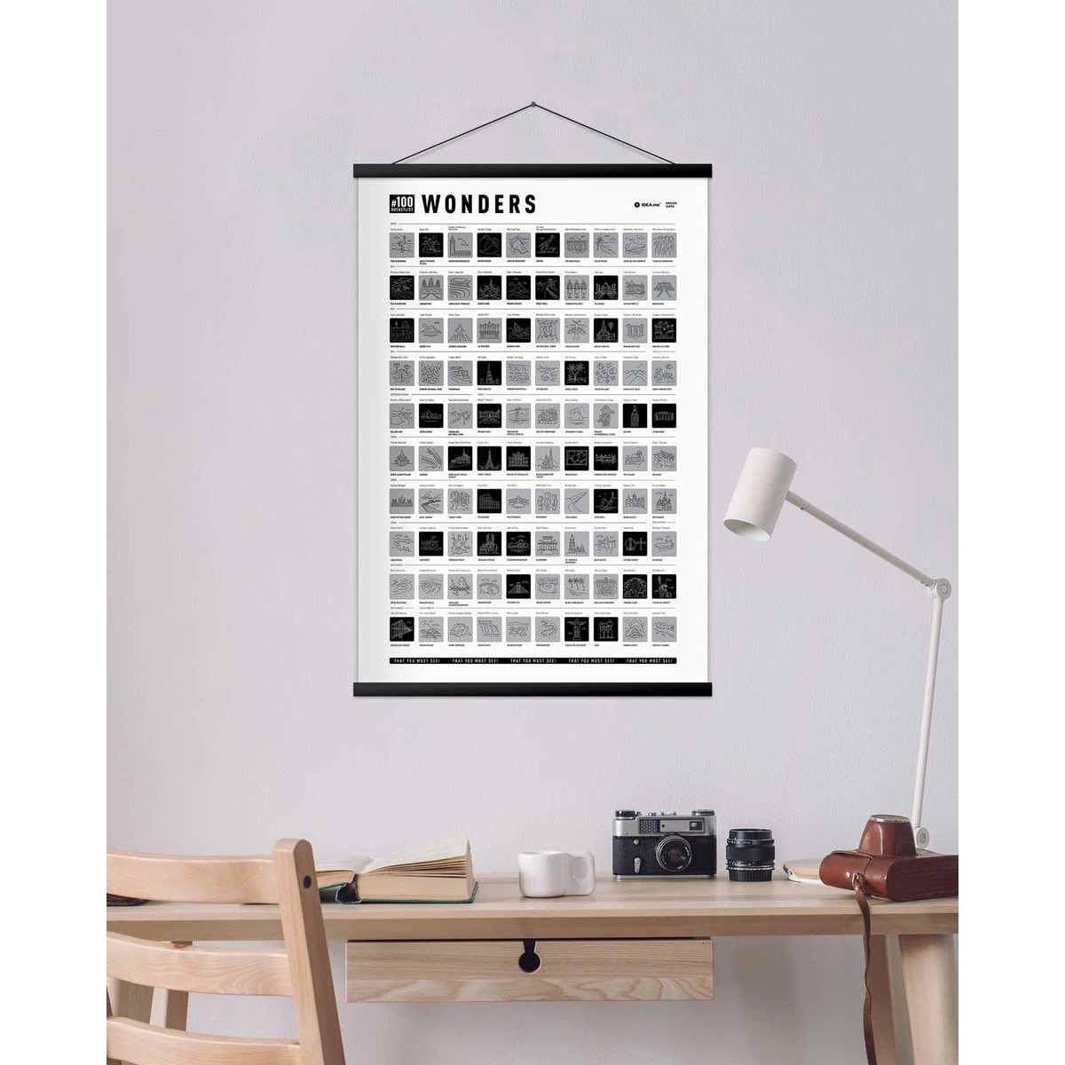 Bucketlist #100 Wonders Edition to wspaniale zaprojektowany interaktywny plakat ze 100 najbardziej imponującymi miejscami na ziemi.