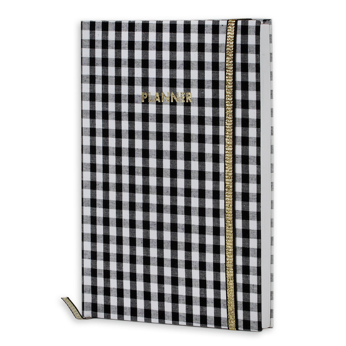 Planner w okładce z tkaniny w czarno-białą kratkę, Rok i miesiące nie są zaznaczone, miejsce na własnoręczne dopisanie Zakładka w formie tasiemki Zawiera: – miejsce na notatki w danym roku – miejsce ...
