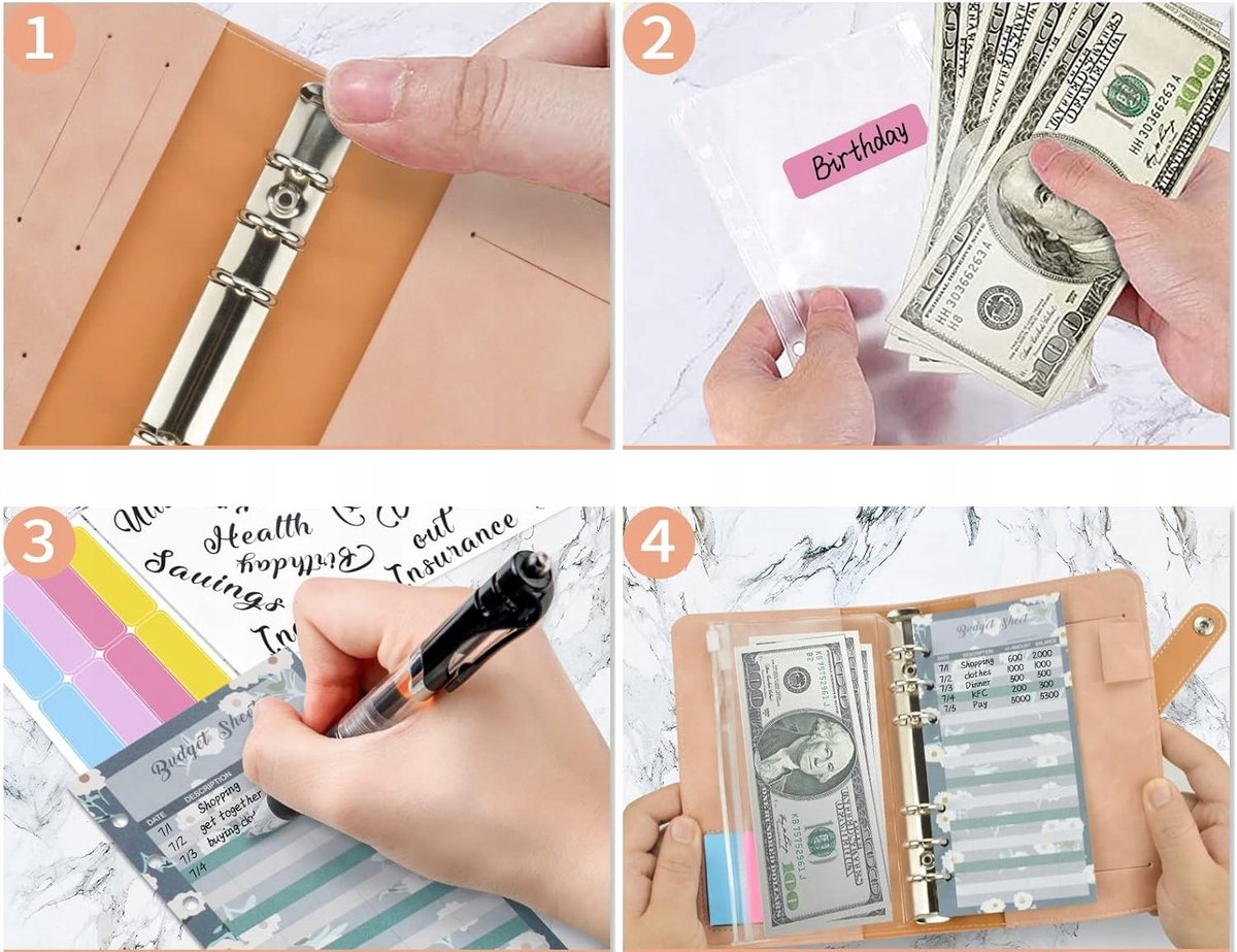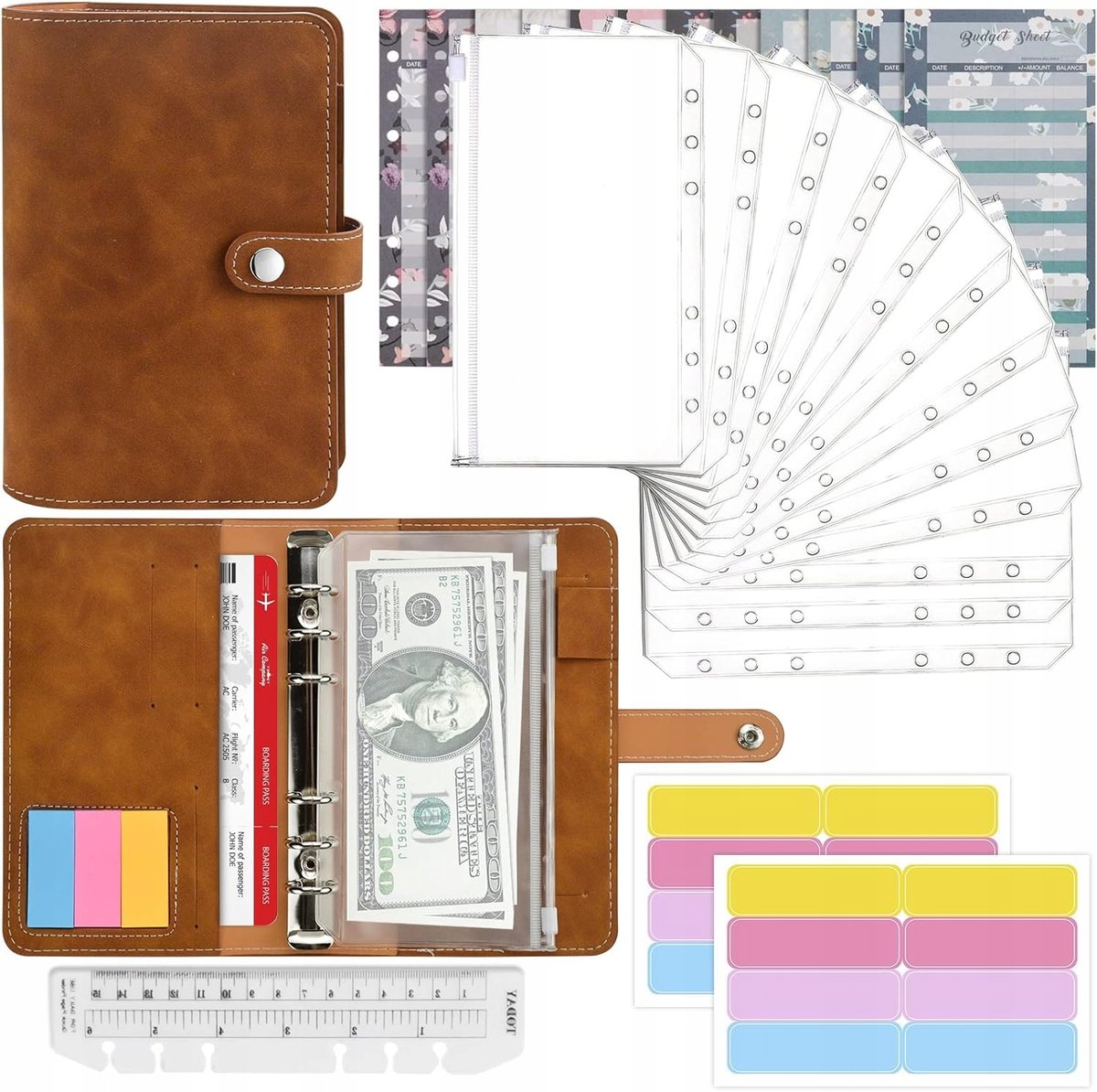 ✅ Zestaw do zarządzania budżetem zawiera skórzany notes w formacie A6, 12 koszulek na pieniądze do zarządzania budżetem, 12 arkuszy do budżetu, linijkę, 3 kolory karteczek samoprzylepnych oraz 16 samoprzylepnych etykiet. Wszystko, czego potrzebujesz, aby zacząć organizować swoje finanse, znajduje się w jednym kompletnym zestawie.