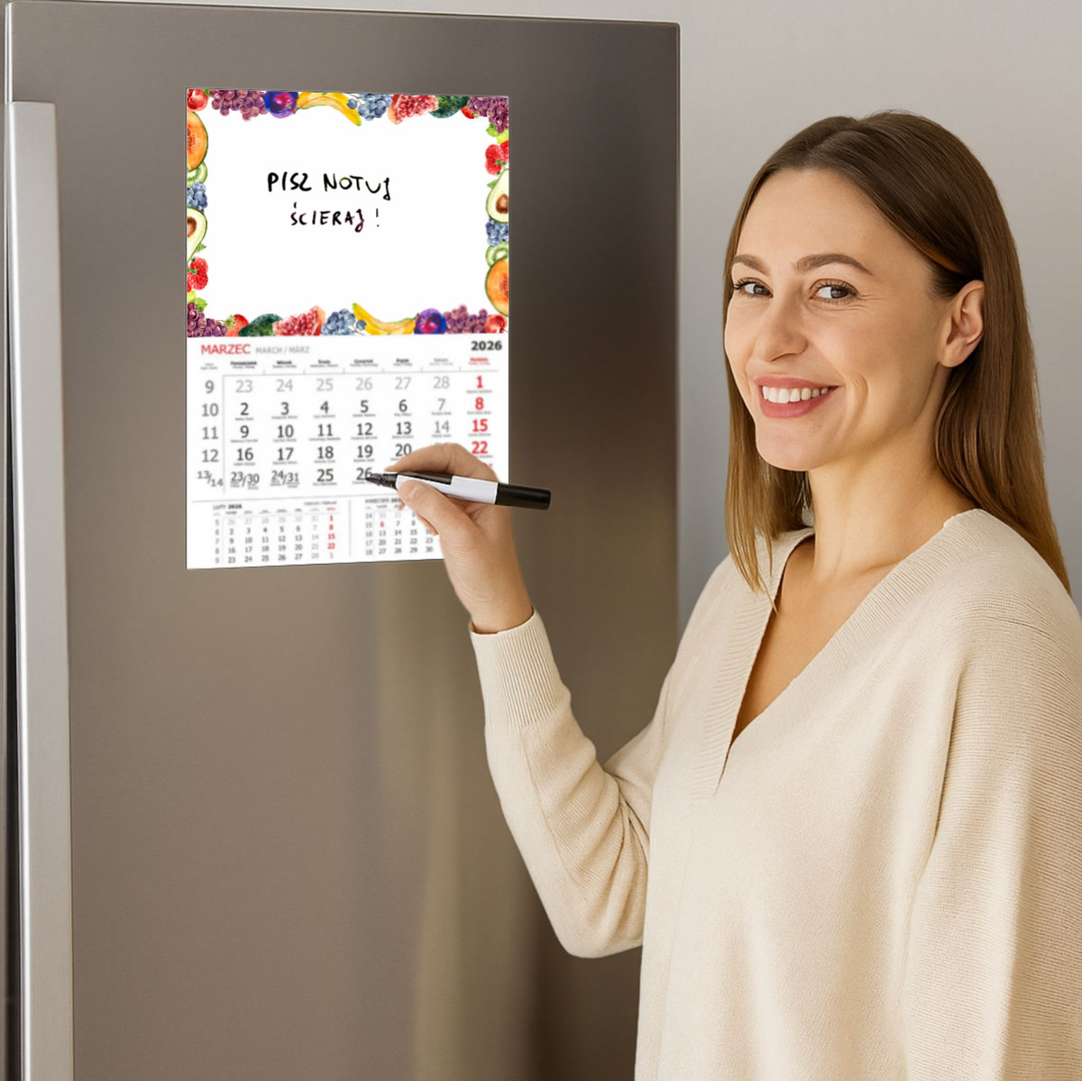 Kalendarz magnes na lodówkę 2026 - tablica suchościeralna