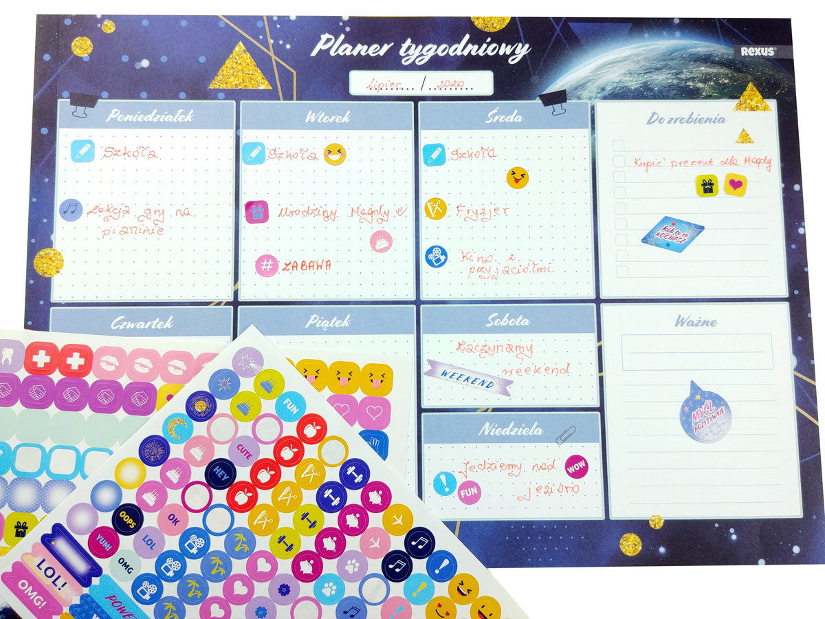 Właśnie zrecenzowałem Planer tygodniowy bezdatowy z naklejkami B4, 52 arkusze, mix wzorów