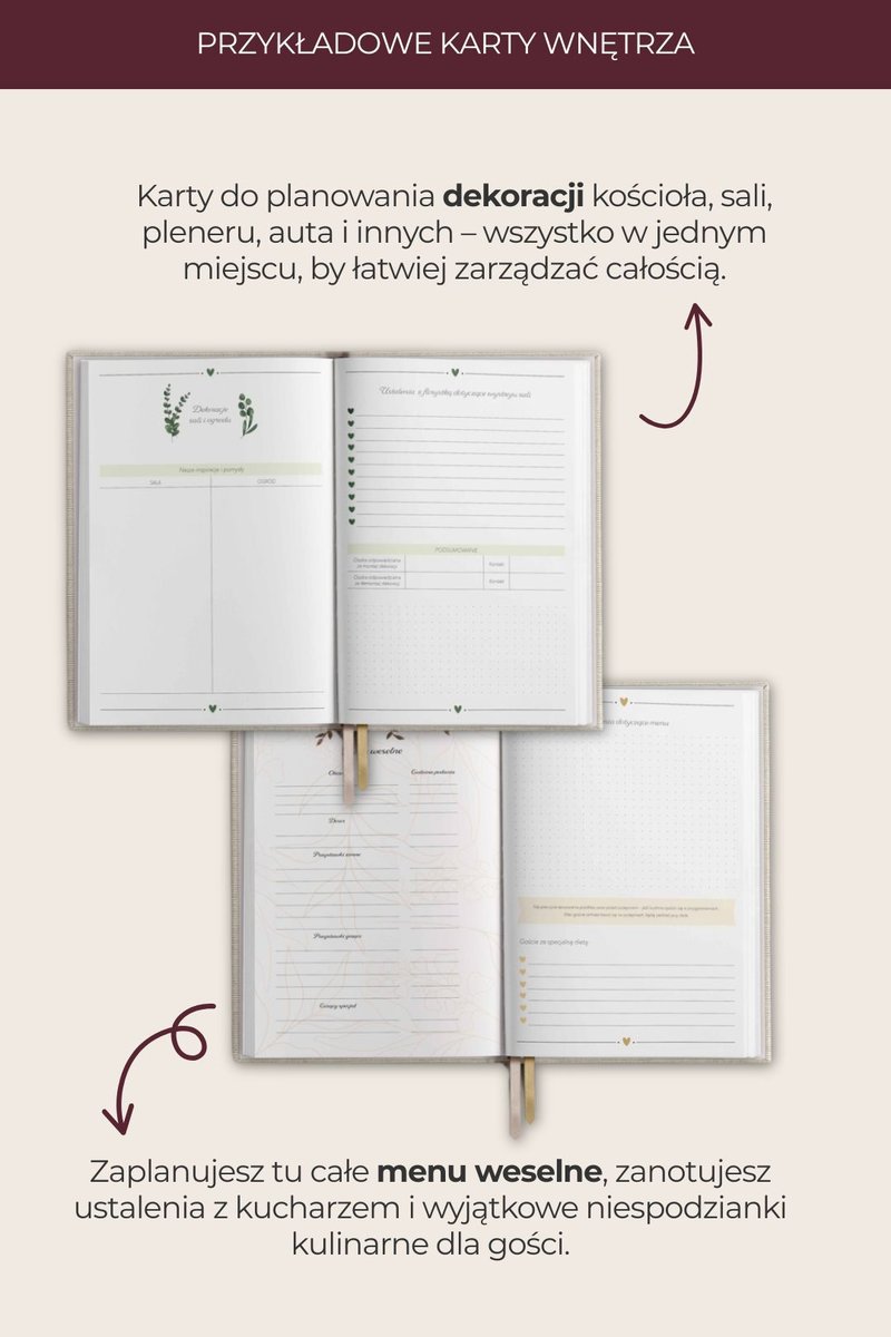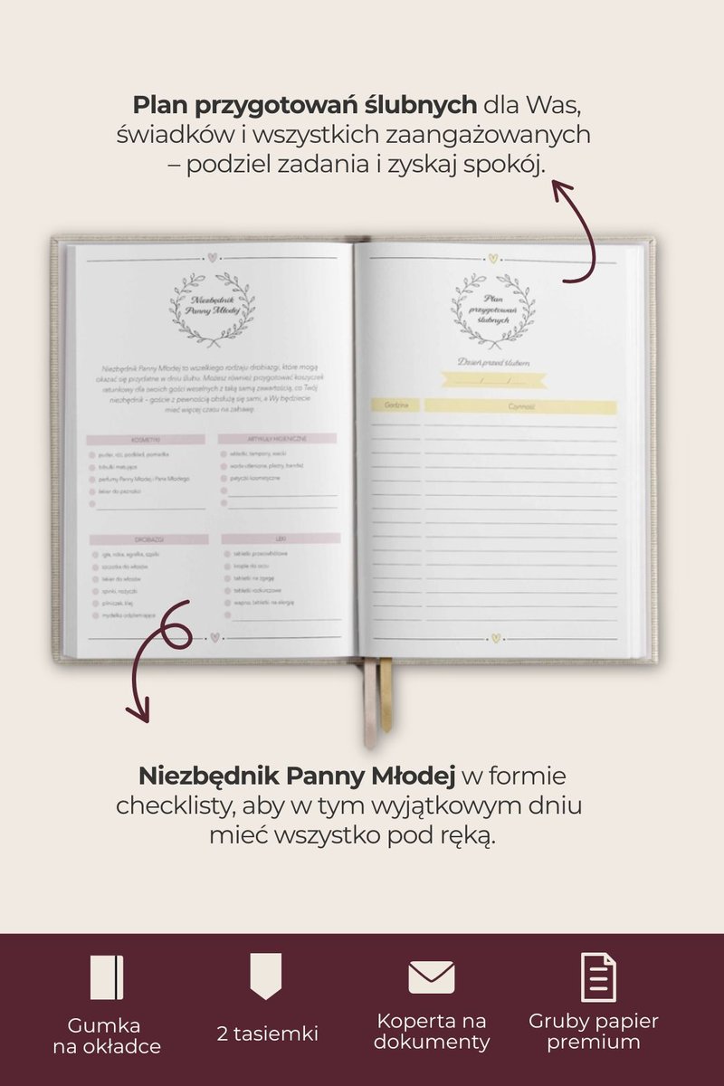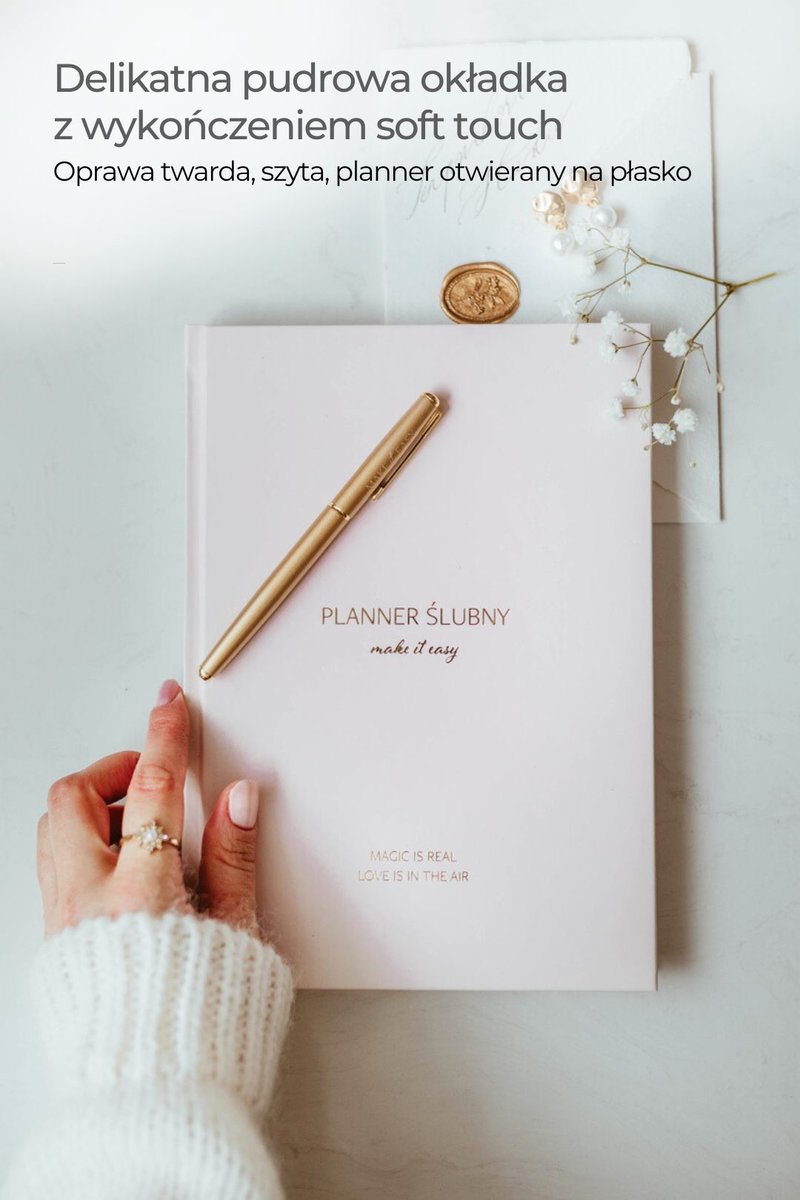 Planner Ślubny Make It Easy jest czymś więcej niż tylko organizerem, w którym zanotujesz wszelkie ustalenia, obliczenia, inspiracje i plany dotyczące Waszego Ślubu. To także poradnik, w którym znajdziesz odpowiedzi na wszelkie pytania i dowiesz się więcej na temat organizacji tak dużej uroczystości. Z naszym Plannerem unikniecie niepotrzebnych kosztów, dowiecie się, o czym pamiętać podpisując umowę z artystami ślubnymi i czym kierować się, by wybrać tych najlepszych. Na temat ślubu tak wiele zostało powiedziane, jednak nikt wcześniej nie spisał tych wszystkich cennych informacji w jednym miejscu.