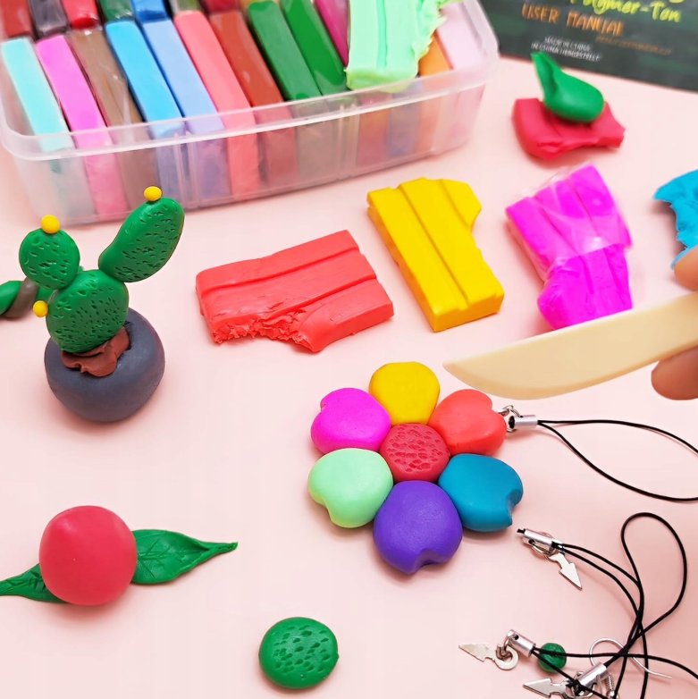 ✔️Stwórz własne figurki, breloczki, ozdoby i dekoracje dzięki zestawowi 50 kolorów modeliny polimerowej, który zapewnia nie tylko doskonałą zabawę, ale i rozwój zdolności manualnych.