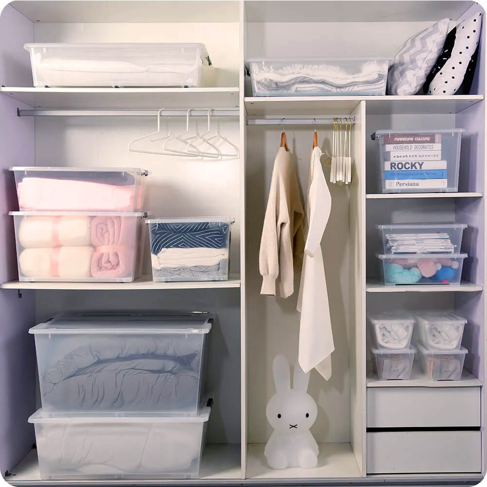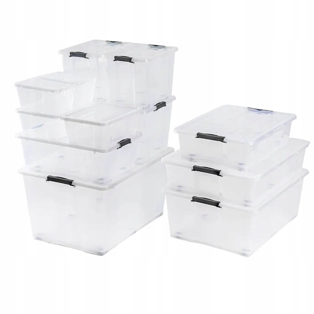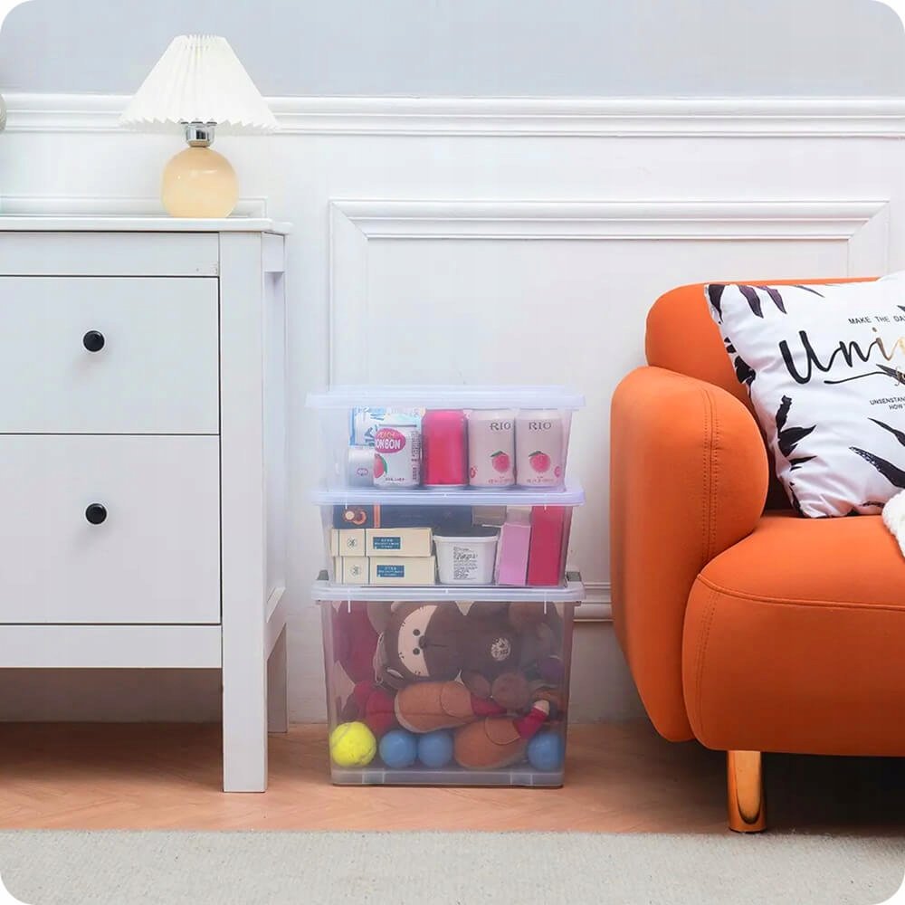 Pokrywa z wygodnym zatrzaskiem zapewnia maksymalne dopasowanie. Dzięki temu zawartość jest chroniona przed wilgocią, kurzem i wszelkimi zabrudzeniami. Doskonale sprawdzą się jako pojemniki do kuchni, łazienki, biura czy w domowym warsztacie. Łatwo je ustawiać w stosy, co pozwala zaoszczędzić miejsce w szafkach czy na półkach.