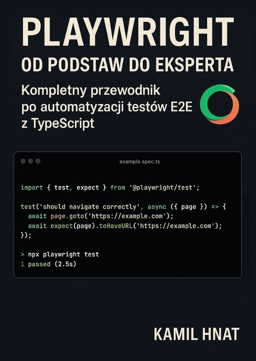 Playwright od podstaw do eksperta to praktyczny przewodnik po automatyzacji testów E2E z użyciem TypeScript. Książka przeznaczona jest dla QA Engineerów, testerów i programistów, którzy chcą tworzyć stabilne, skalowalne i szybkie testy webowe. Znajdziesz tu przykłady, mockowanie API, zarządzanie stanem sesji, integrację z CI/CD oraz wzorce projektowe Page Object Model i fixtures.