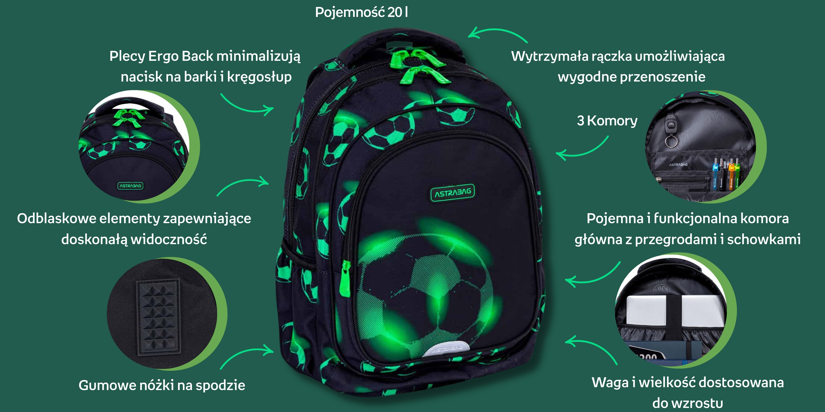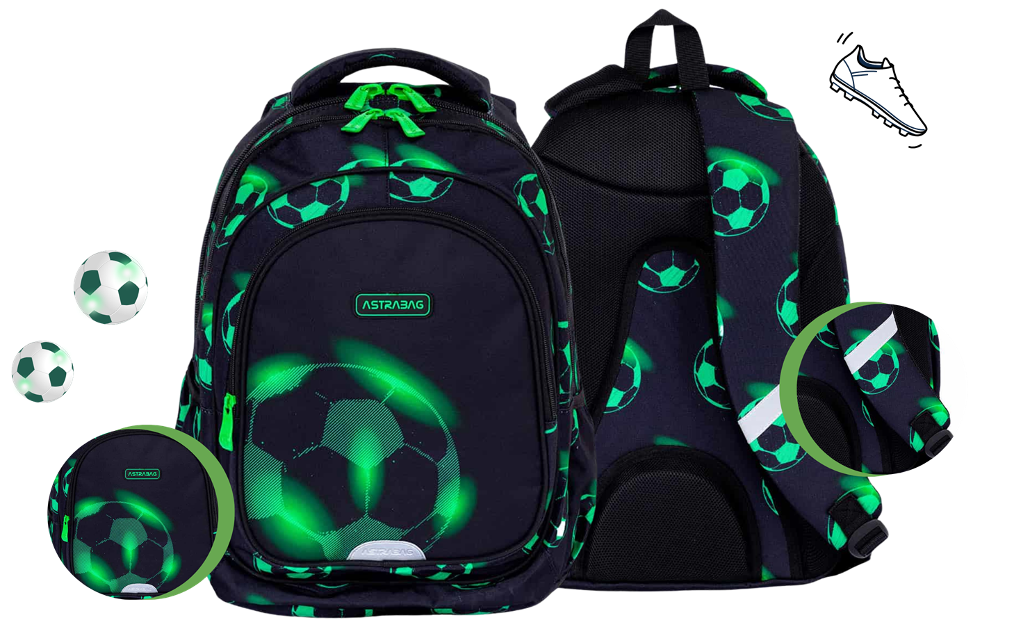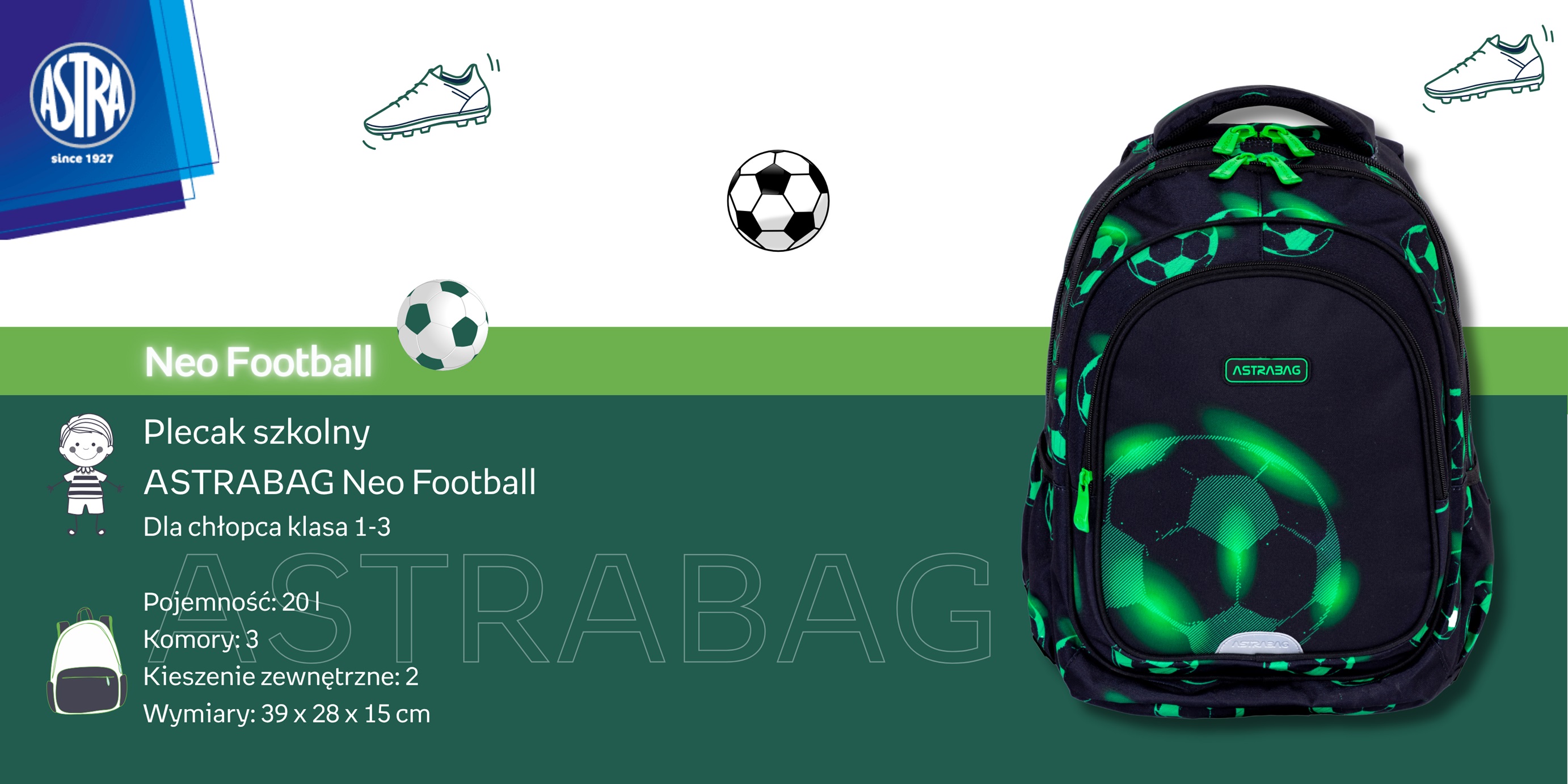 Plecak ASTRABAG Neo Football o pojemności 20 l to idealny wybór dla dzieci w wieku szkolnym.