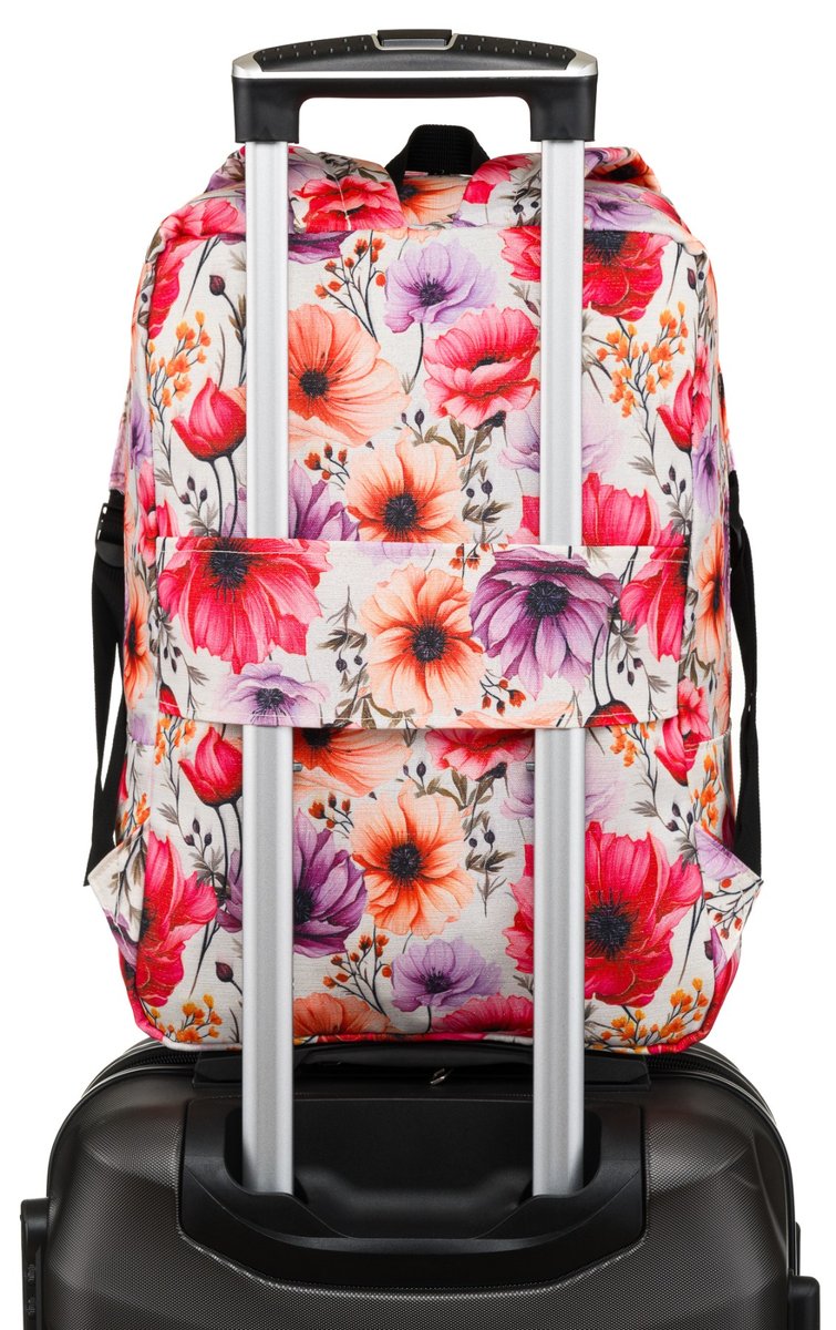 Kluczowym elementem tego modelu jest pasek na plecach, który umożliwia zamocowanie plecaka na rączce walizki. Dzięki temu możesz z łatwością przewozić go na bagażu na kółkach, co daje wolne ręce podczas poruszania się po lotniskach czy dworcach.