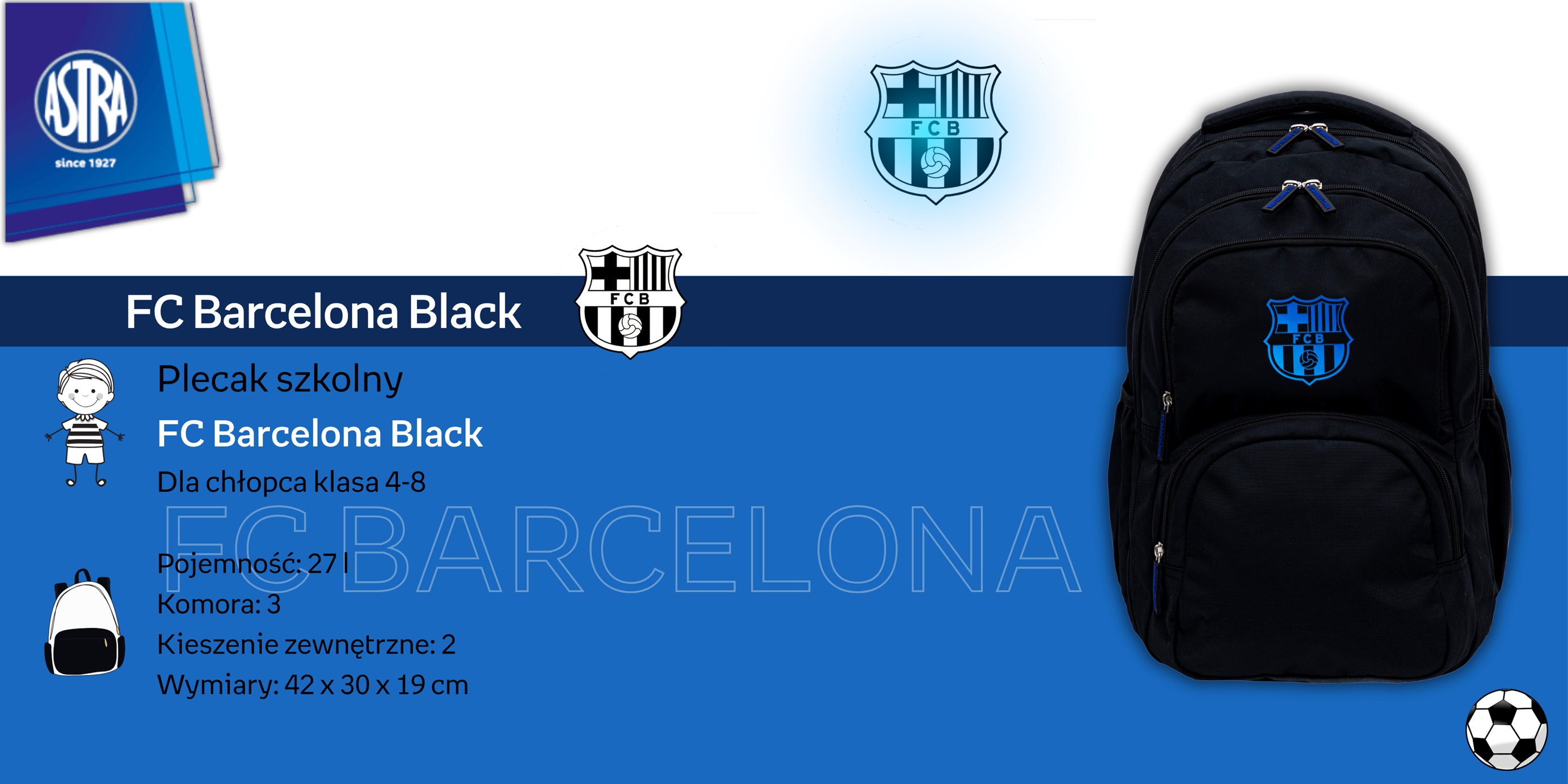 | Nazwa: | Plecak szkolny dla chłopca Astrabag FC Barcelona Black AB200 piłka nożna klasa 4-8 |