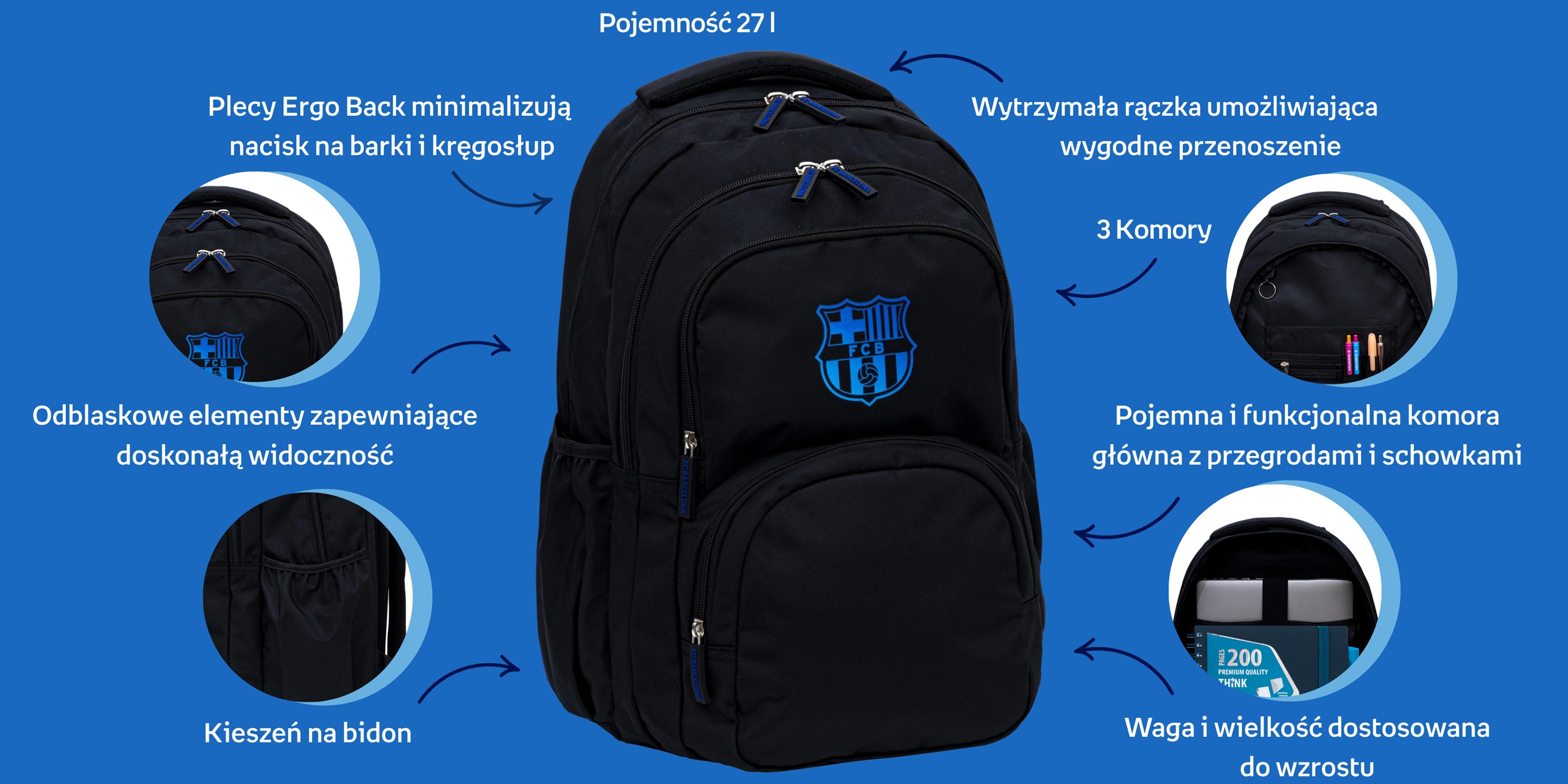 Plecak FC Barcelona Black o pojemności 27 l to idealny wybór dla dzieci w wieku szkolnym.