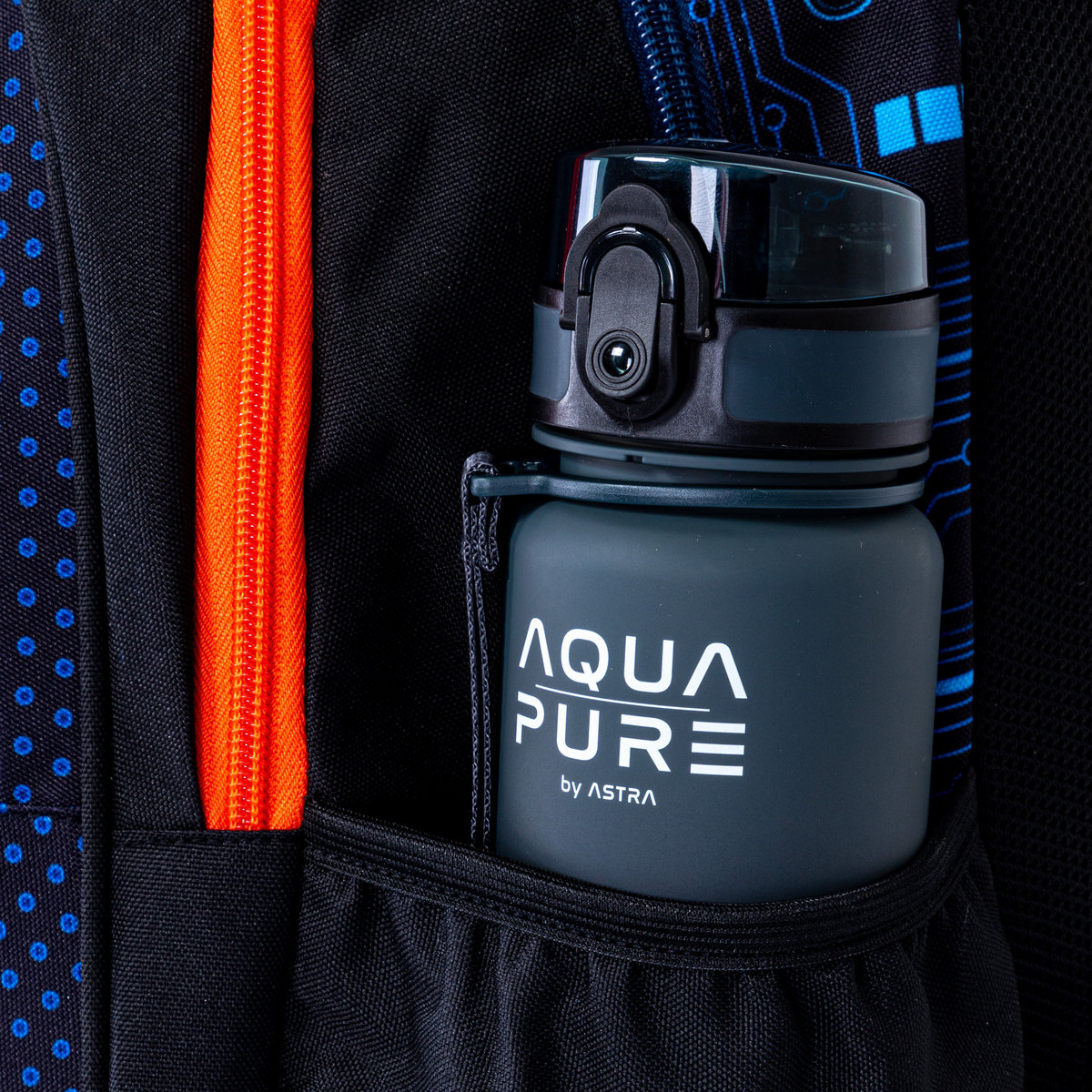 Plecak posiada boczne kieszenie na bidon lub butelkę z wodą, co zachęca dziecko do regularnego nawadniania się. Dodatkowe przegródki pozwalają na uporządkowanie długopisów, kredek i innych drobiazgów. Wygodny uchwyt na górze ułatwia zawieszenie plecaka w szkole lub przenoszenie go w ręku.