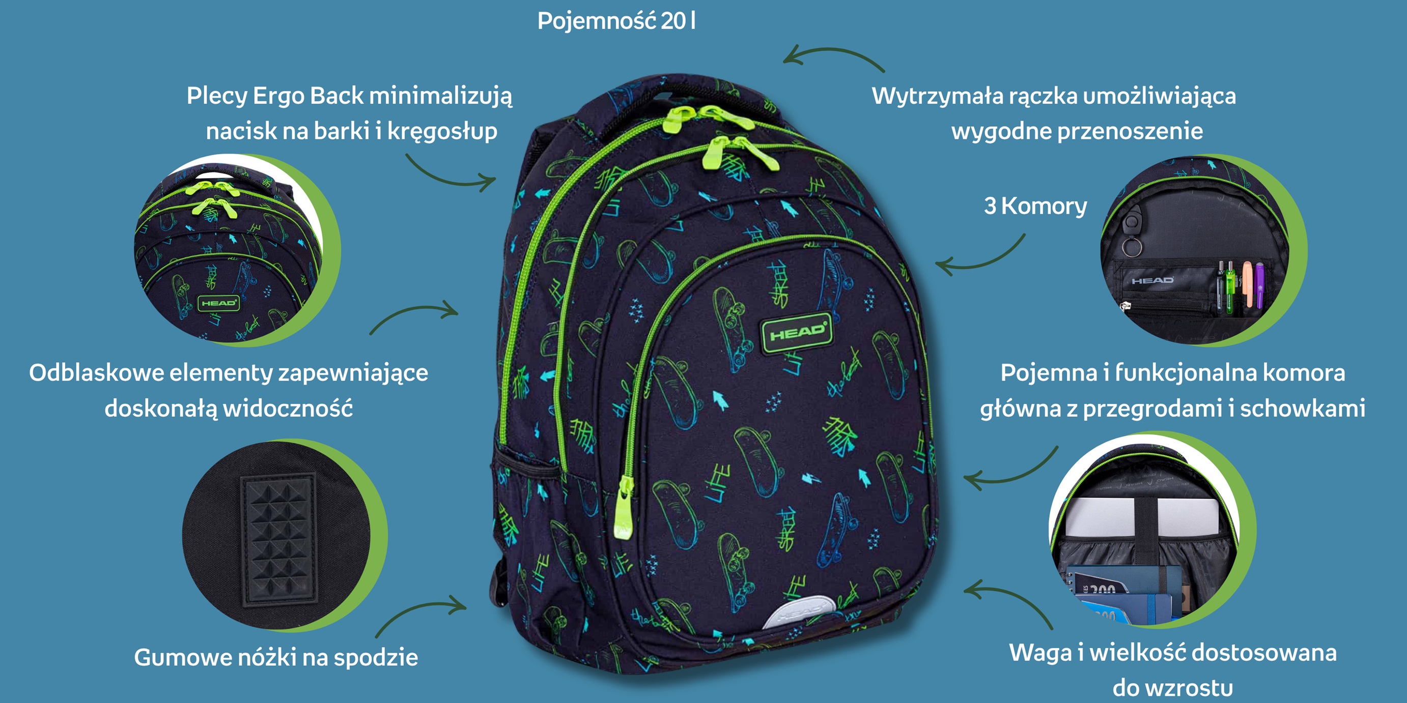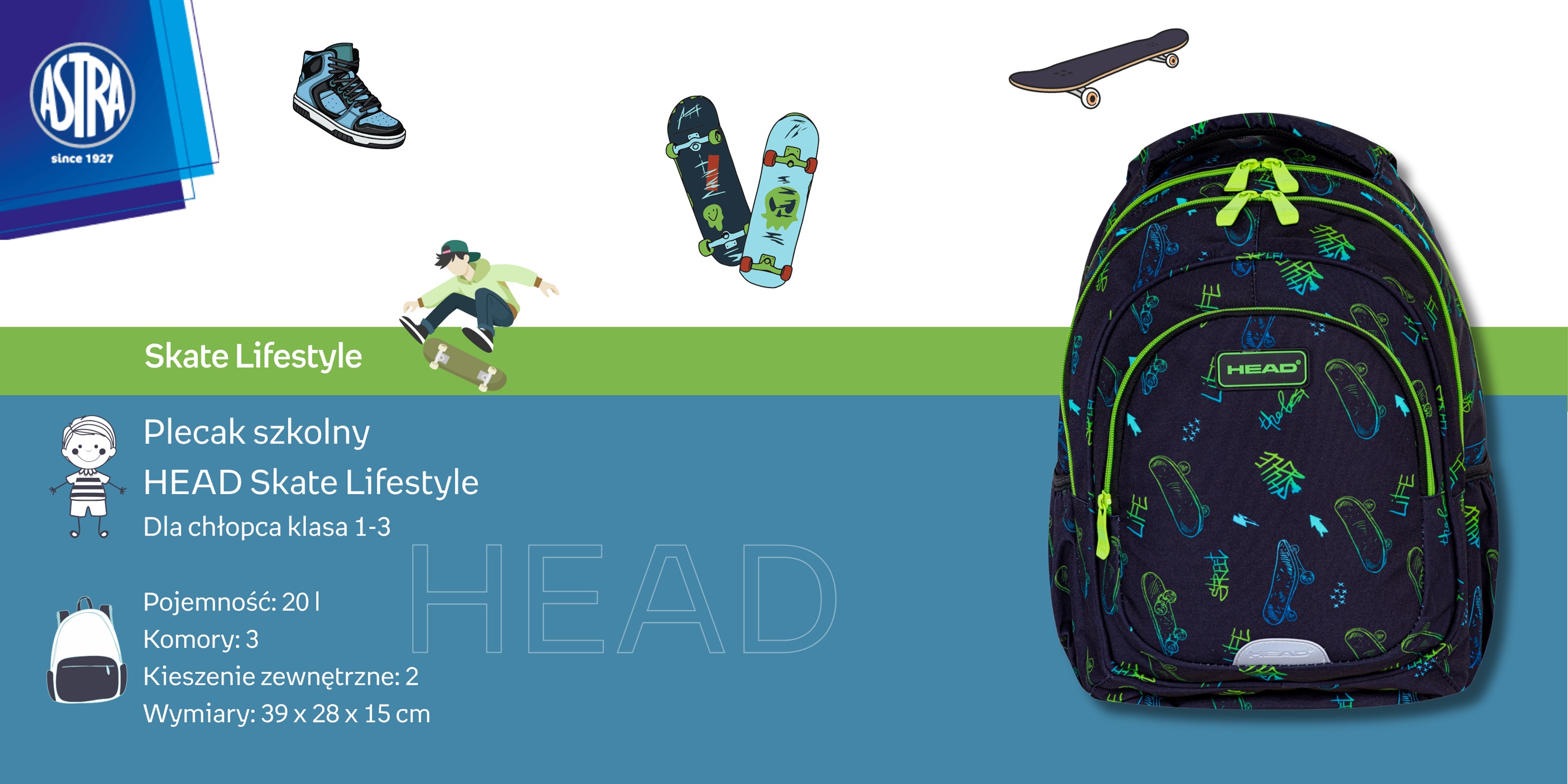 Plecak HEAD Skate Lifestyle o pojemności 20 l to idealny wybór dla dzieci w wieku szkolnym.