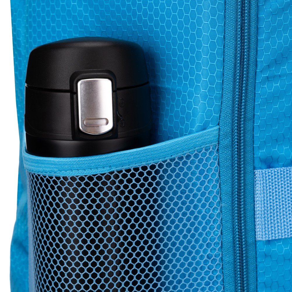 Po jednej stronie plecaka znajduje się elastyczna kieszeń z siatki, która sprawdzi się jako miejsce na butelkę z wodą albo bidon.