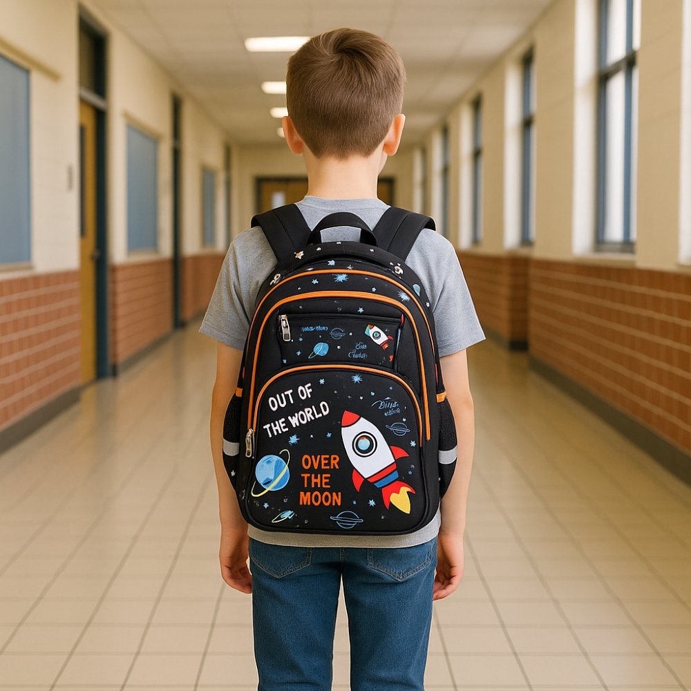 ⭐Plecak szkolny z motywem kosmosu, w czarnym kolorze z wzorami rakiet i planet to spełnienie marzeń dla każdego małego fana kosmicznych przygód. Funkcjonalny, wygodny i lekki plecak, który pomieści wszystkie niezbędne rzeczy do szkoły.