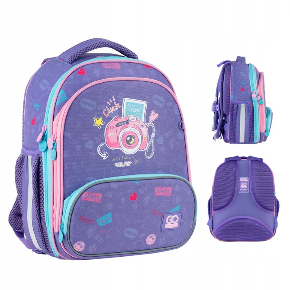 | Nazwa: | Plecak anatomiczny dla dziewczynki 1 klasa fioletowy szkolny z pasem piersiowym wielokomorowy 12 l GoPack |