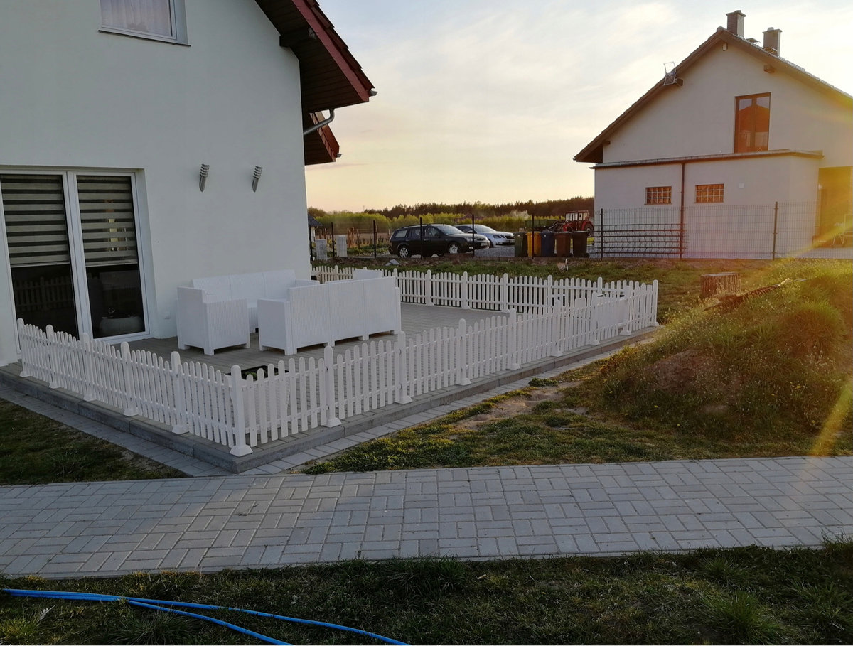 Wysokość słupka z postawą 53cm, najwyższej sztachety względem podłoża 52cm.