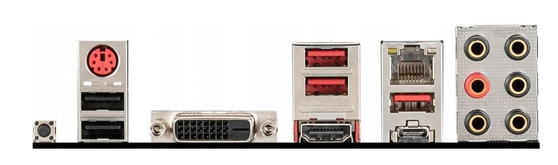- Zewnętrzne złącza: DVI-D - 1 szt., HDMI - 1 szt., RJ45 (LAN) - 1 szt., USB Type-C - 1 szt., USB 3.1 Gen. 1 (USB 3.0) - 2 szt., USB 3.1 Gen.2 - 1 szt., USB 2.0 - 2 szt., PS/2 klawiatura/mysz - 1 szt., Audio jack - 6 szt., Flash BIOS Button - 1 szt.