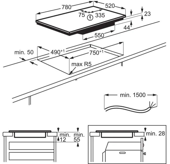 Wymiary montażowe: 75 x 49 cm