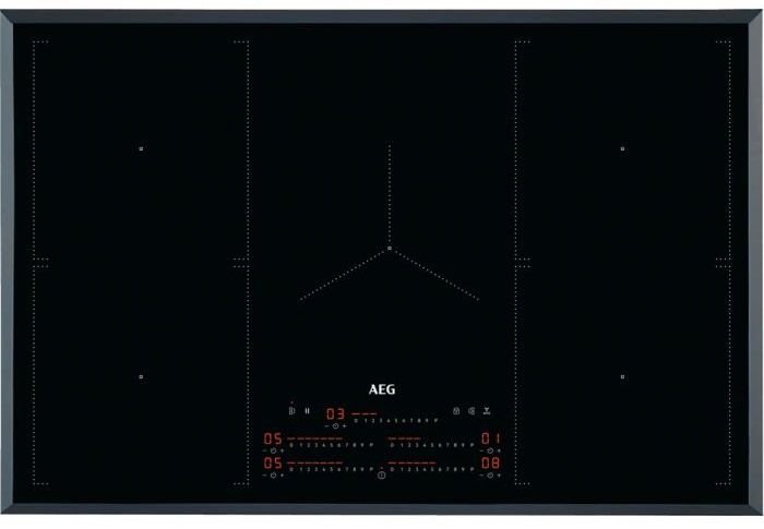 Płyta indukcyjna 78 x 52 cm, posiadająca wskaźnik opadania ciepła 3-stopniowy. Płyta indukcyjna AEG IKE85753FB 949 597 907 sterowana jest dotykowo, ma 5 pól grzejnych.