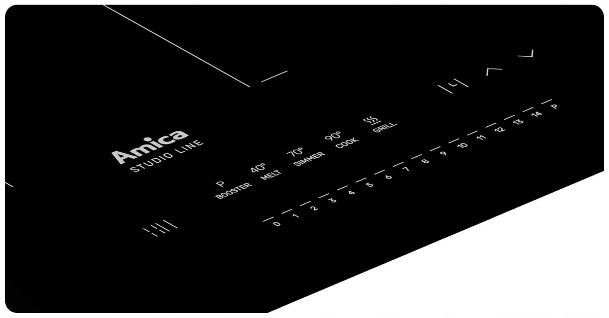 Płytę Amica zamontujesz praktycznie w każdym blacie - nawet najcieńszym 12 mm, bez konieczności stosowania przedniej wentylacji ani przegrody. To ogromna elastyczność przy projektowaniu wymarzonej kuchni.