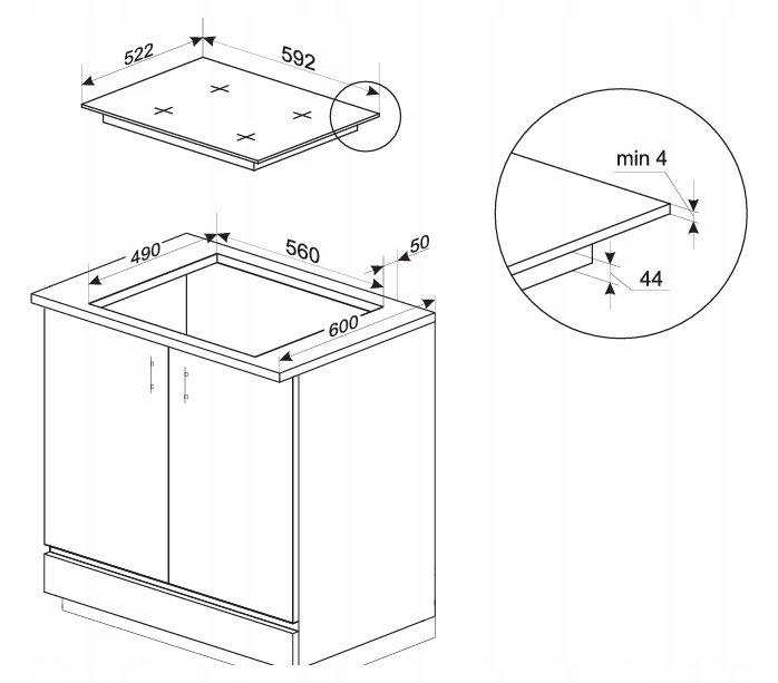 - Minimalna wymagana przestrzeń pod płytą: 10 mm