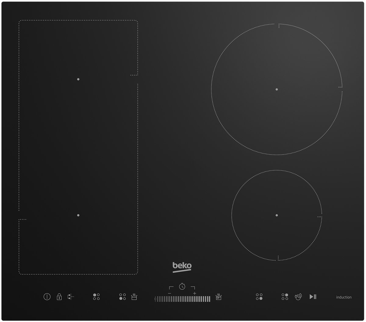 Płyta indukcyjna Beko HII 64500 UFT Timer 58cmPłyta indukcyjna do zabudowy o szerokości 60cm wykonana ze szkła. Liczba pól elektrycznych: 4, 19 poziomów gotowania. Sterowanie Touch sensitive, szybkie