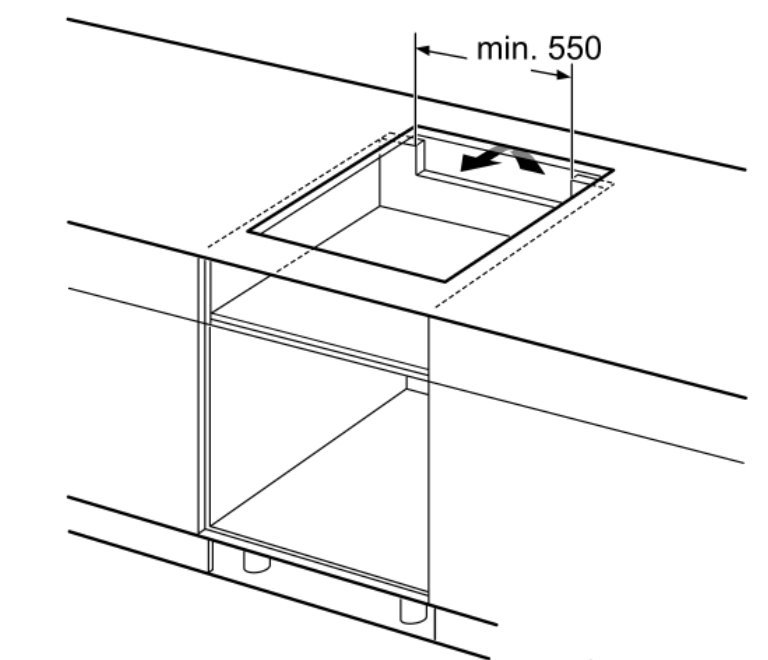 - Wymagane wymiary montażowe wnęki (WxSxG mm) : 51 x 560 x (490 - 500)