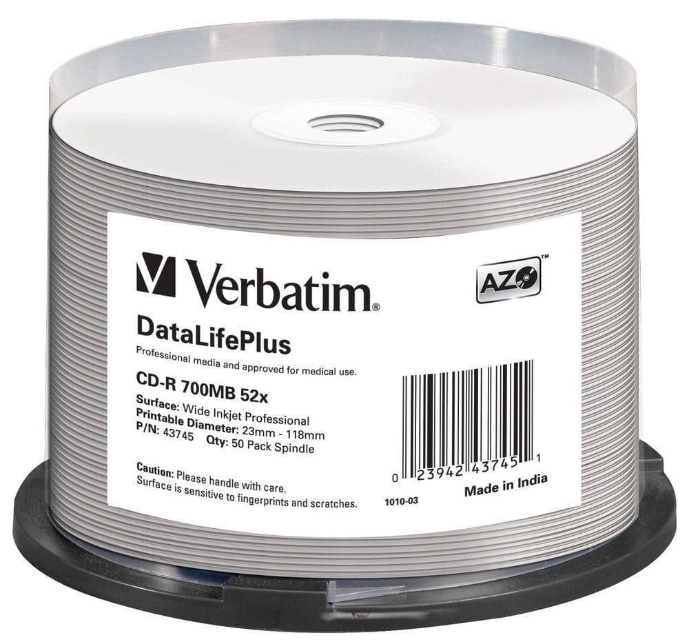 Właśnie zrecenzowałem Płyty CD-R VERBATIM AZO DataLife+ Primtable 43745, 700 MB, 52x, 50 szt.