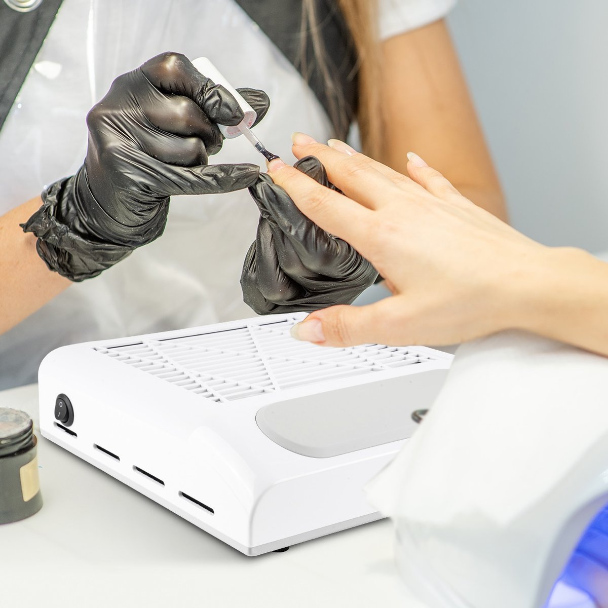 Za jego pomocą, stanowisko pracy stylistki paznokci jest zawsze czyste, zapobiegając przy tym wdychanie pyłku przez manikiurzystkę, jak i samą klientkę. Co więcej, pyłek nie osadza się na płytce paznokci, pozwalając tym samym na bezproblemowe oraz profesjonalne wykonanie usługi.