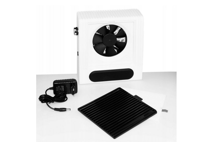 Pochłaniacz bezworkowy o niezwykle dużej mocy i nowemu systemowi ssania próżniowego doskonale pochłonie pył, powstały podczas pracy z frezarką lub pilnikiem. Posiada wewnątrz specjalny filtr, który wchłania pył i nie pozwala by wydostał się z powrotem na zewnątrz.