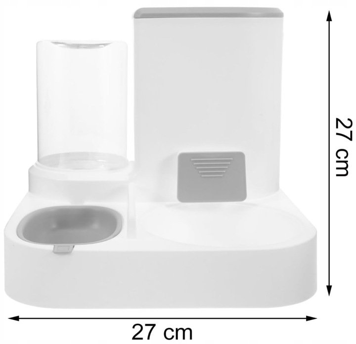 Konstrukcja podajnika sprawia, że jedzenie oraz woda są dozowane samoczynnie, gdy w misce brakuje karmy lub wody, aż do wyczerpania zapasu w pojemniku. Ponadto karma nie blokuje się w podajniku do karmy, więc swobodnie możesz zostawić swojego pupila samego w domu i nie musisz się martwić o to, czy będzie głodny lub spragniony.