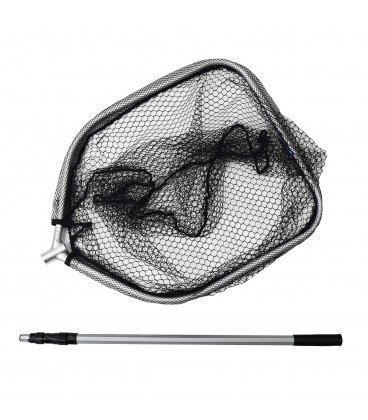 To mocny podbierak na karpia i duże drapieżniki. Posiada wzmocnioną sztywną ramę obręczy siatki i teleskopowy uchwyt z utwardzonego aluminium. Siatka została wykonana z materiału nienamakającego.
