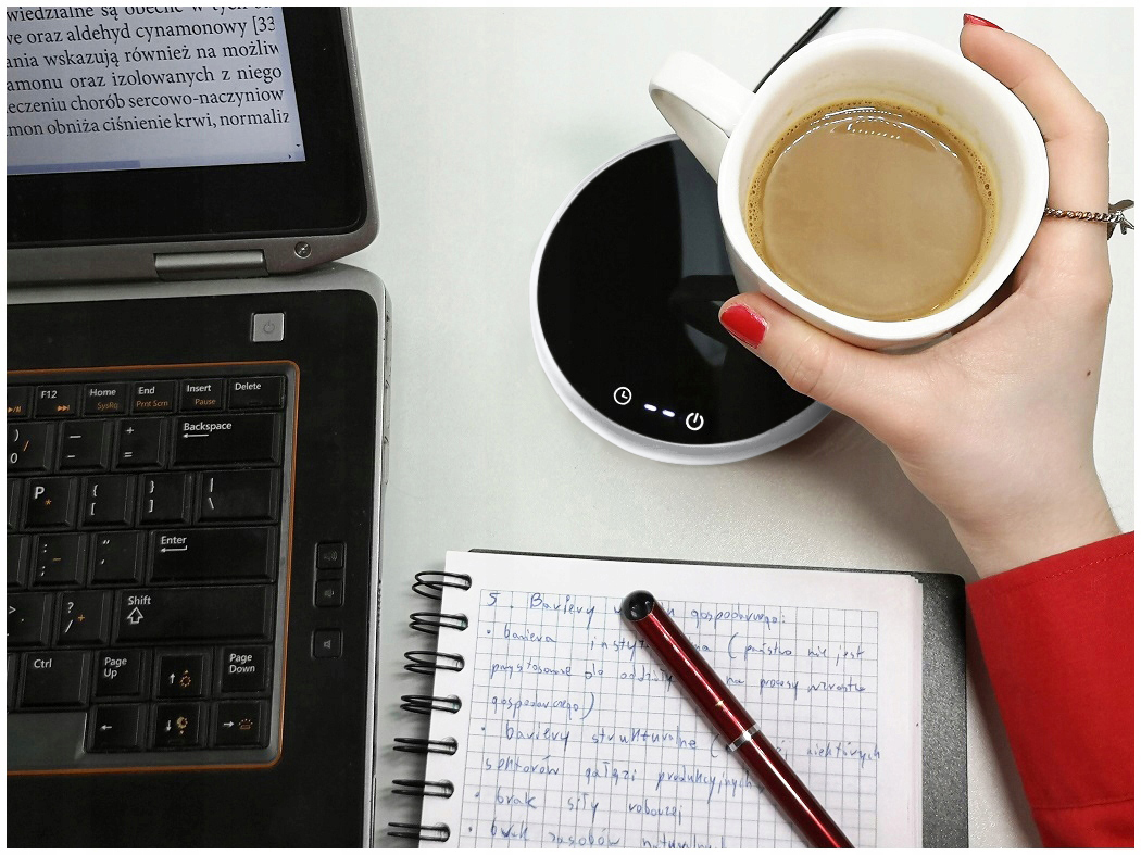 Długie godziny pracy, nauki czy domowego relaksu to chwile, w których filiżanka kawy lub herbaty potrafi poprawić nastrój i dodać energii. Niestety, napój szybko stygnie, tracąc swój smak i aromat. Z podgrzewaczem do kubka możesz zapomnieć o tym problemie — Twój ulubiony napój pozostanie ciepły przez cały czas, bez potrzeby podgrzewania czy dolewania wrzątku. To idealne rozwiązanie dla wszystkich, którzy cenią sobie wygodę i nie chcą rezygnować z przyjemności picia ciepłej kawy, nawet podczas najbardziej wymagającego dnia.