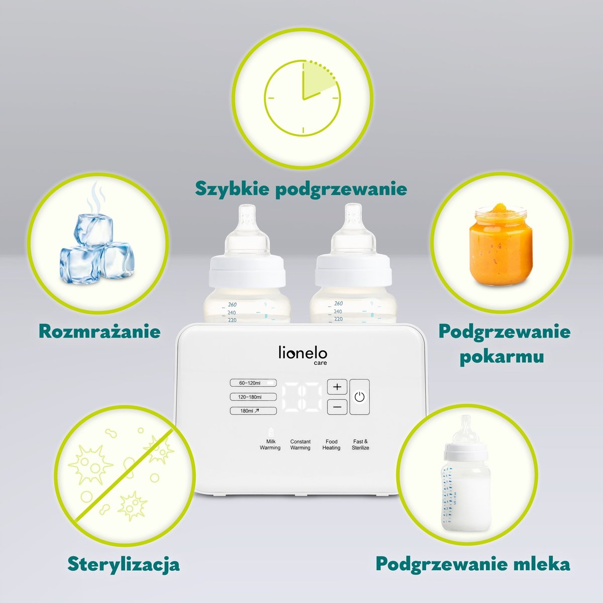 Podgrzewacz do butelek Lionelo Care Thermup Double został stworzony z myślą o wygodnym i intuicyjnym użytkowaniu, dzięki czemu zapewnia: