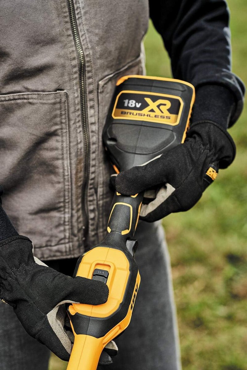 Składana podkaszarka DeWALT DCMST561 z 2 biegowym silnikiem bezszczotkowym. Połączenie technologii akumulatorowej i podkaszarki to idealne rozwiązanie, niewielka waga w porównaniu do modeli spalinowych, wynosi tylko około 4 kg z akumulatorem 5Ah, cicha praca, brak plączących się przewodów pod nogami (podkaszarki elektryczne). Konstrukcja jest bardzo dobrze wyważona, bardzo dobrze leży w rękach i łatwo się manewruje. Zastosowanie technologii brushless zwiększa możliwości eksploatacyjne narzędzia - dłuższy czas pracy na jednym naładowaniu akumulatora, mniejsze bardziej kompaktowe wymiary przy zwiększonej wydajności w porównaniu z silnikiem szczotkowym. Zastosowany silnik generuje moc na poziomie 400W, napędza żyłkę w 2 prędkościach obrotowych I bieg 0-4600obr./min i 0-6000obr./min. Na każdym z biegów dodatkowo obroty możemy dostosować za pomocą spustu włącznika, do aktualnych potrzeb. Narzędzie ogrodowe DCMST561 sprawdzi się w przydomowym ogródku, działce, wszędzie tam, gdzie brakuje nam źródła zasilania bądź przepisy ograniczają użycia sprzętu spalinowego. Zastosowanie składanego uchwytu, ułatwiają przechowywanie i transport, urządzenie możemy transportować nawet w małym samochodzie, złożona ma długość około 1m.