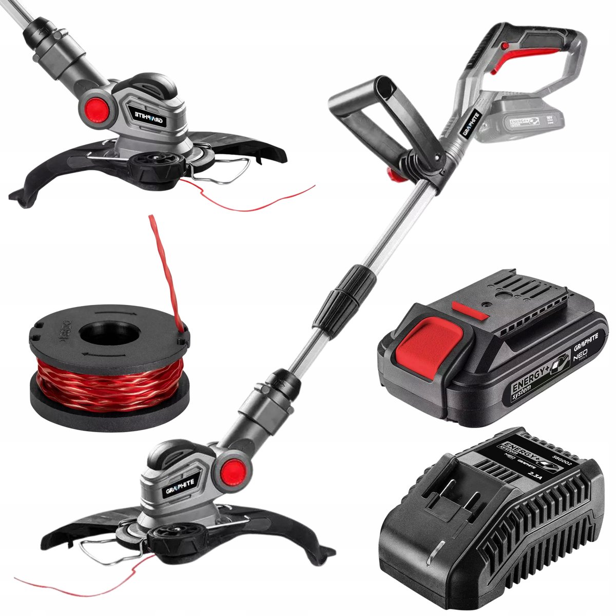 | Nazwa: | Podkaszarka Kosa Akumulatorowa na Żyłkę + 2 Ah Bateria + Ładowarka GRAPHITE |