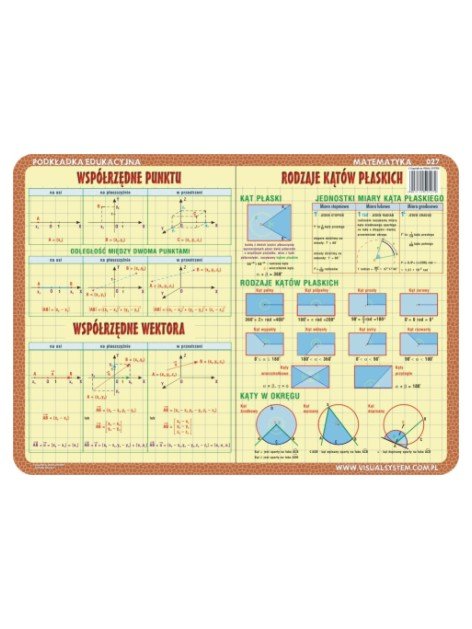 Podkładka edukacyjna - matematyka 027 dwustronna podkładka edukacyjna na biurko do nauki matematyki wymiary: 40x30 cm znajdują się na niej tematy z matematyki: ułamki, zbiory, współrzędne punktu