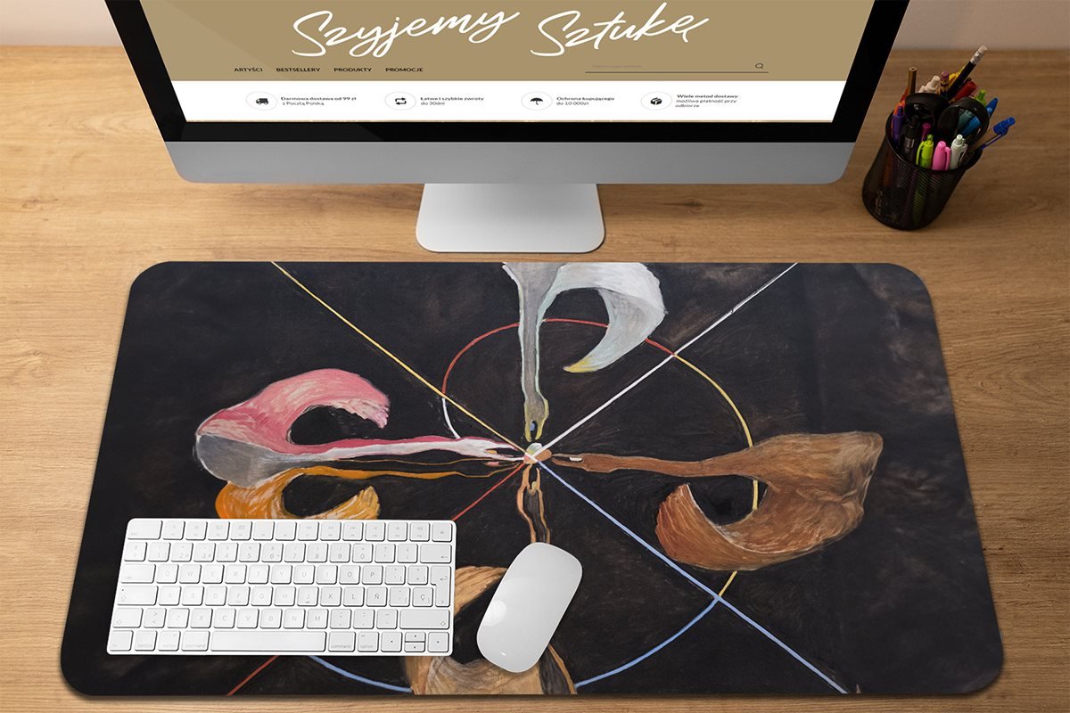 Podkładka pod mysz z nadrukiem na biurko. Rozmiar podkładki to 60 x 40 cm.