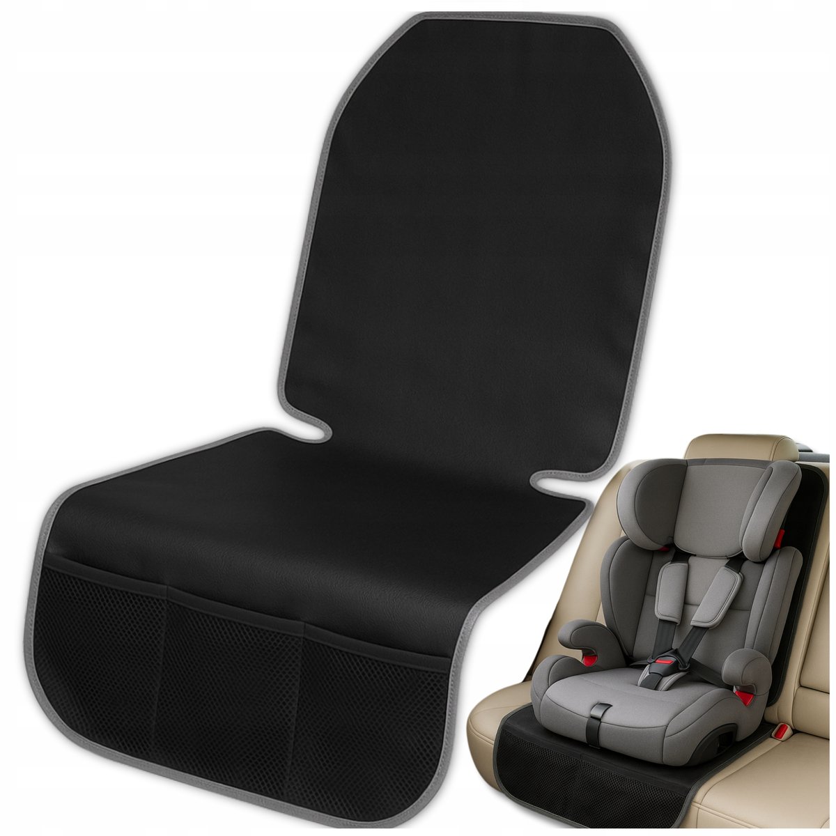 ✅ Dzięki dodatkowym kieszeniom z siatki podkładka ochronna na siedzenie pod fotelik zapewnia miejsce na zabawki, butelkę czy inne drobiazgi, które warto mieć pod ręką w podróży.