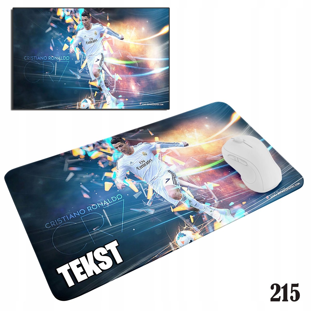 | Nazwa: | PODKŁADKA POD MYSZKĘ MYSZ WZORY DO WYBORU - PIŁKA NOŻNA RONALDO 29x36cm |