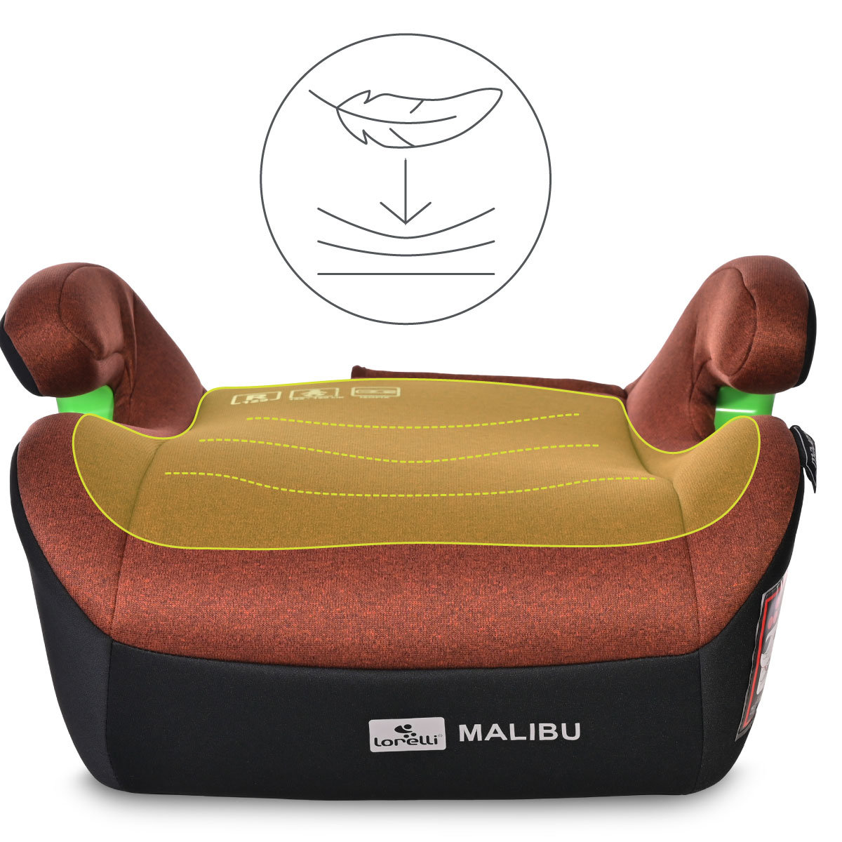 MALIBU – fotelik, "poddupnik" samochodowy dla dzieci 125–150 cm na każdą podróż Fotelik samochodowy MALIBU to połączenie dobrej jakości materiałów i stylowego wzornictwa, które zapewnia dziecku w wieku od 6 do 12 lat bezpieczną i komfortową podróż. Dzięki miękkiej, a zarazem odpornej na zużycie tapicerce, fotelik sprawdzi się w każdej przygodzie – od codziennych przejazdów po długie wakacyjne trasy. Podwójny system montażu (ISOFIX i pas samochodowy) gwarantuje stabilność i szeroką kompatybilność z różnymi pojazdami.