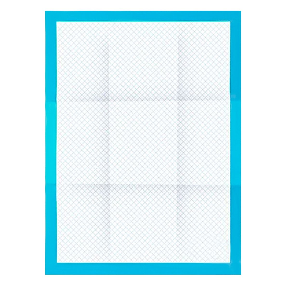 SPECYFIKACJA - kolor: niebieski / biały; materiał: włóknina, miazga drzewna, folia wylewana, makrocząsteczka + woreczki (PE 100%); wymiar podkładu: 60 x 90 cm, wymiary woreczka: 30 x 22 cm; wymiary opakowania: 28 x 40 x 18,5 cm; waga zestawu w opakowaniu: 3,250 kg.