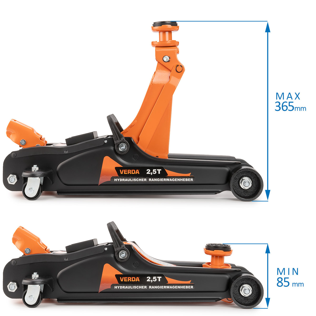 Wysokiej jakości podnośnik hydrauliczny niskoprofilowy 2,5T typu ŻABA. Wykonany z grubej blachy stalowej, zapewniającej odpowiednią sztywność konstrukcji. Wygodny w użytkowaniu, wyposażony w 4 koła, które umożliwiają szybkie podstawienie podnośnika we właściwe miejsce. Praca w zakresie od 85 do 365 mm. Podnośnik niskoprofilowy może być używany podczas pracy z samochodami o obniżonym zawieszeniu.