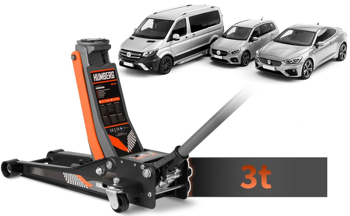 ✔ Udźwig do 3 ton — podnośnik idealny do samochodów osobowych, samochodów niskich oraz multivanów i samochodów dostawczych (do 3 t).